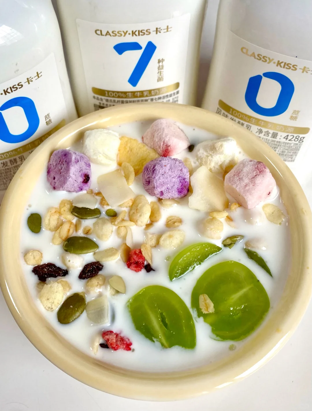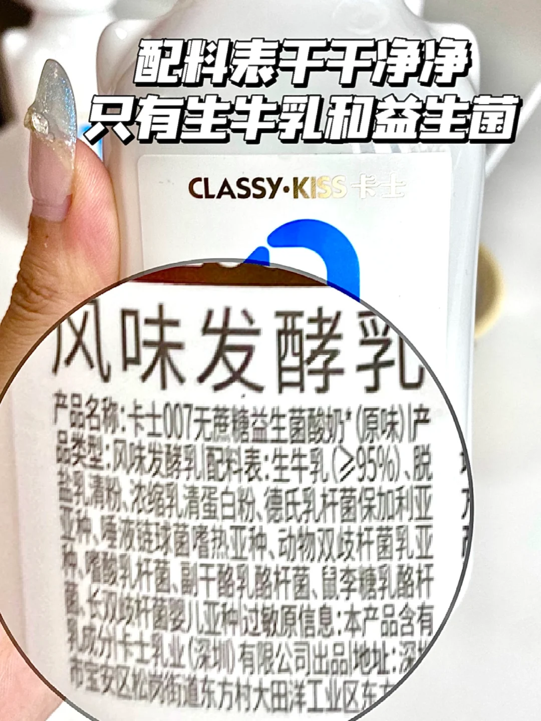 - 无糖酸奶卡士007小奶罐,减脂期姐妹们🉑冲! ✅配料贼干净,只有生牛乳和好多益生菌,没那些乱七八糟的添加 ✅质地细腻顺滑,因为是100%生牛乳奶源,所以奶味巨巨浓郁!味道微微酸,是那种自然发酵的味道,口感醇厚真的很香!喝到嘴巴里还有回甘~ - 我这次是从上买的😄价格划算而且运输好快! 咱早上配点麦片和水果当早餐,真的很不错,我每次买来连吃一周都不腻嘿嘿 还可以做低卡蛋糕,一整个好吃住!!
