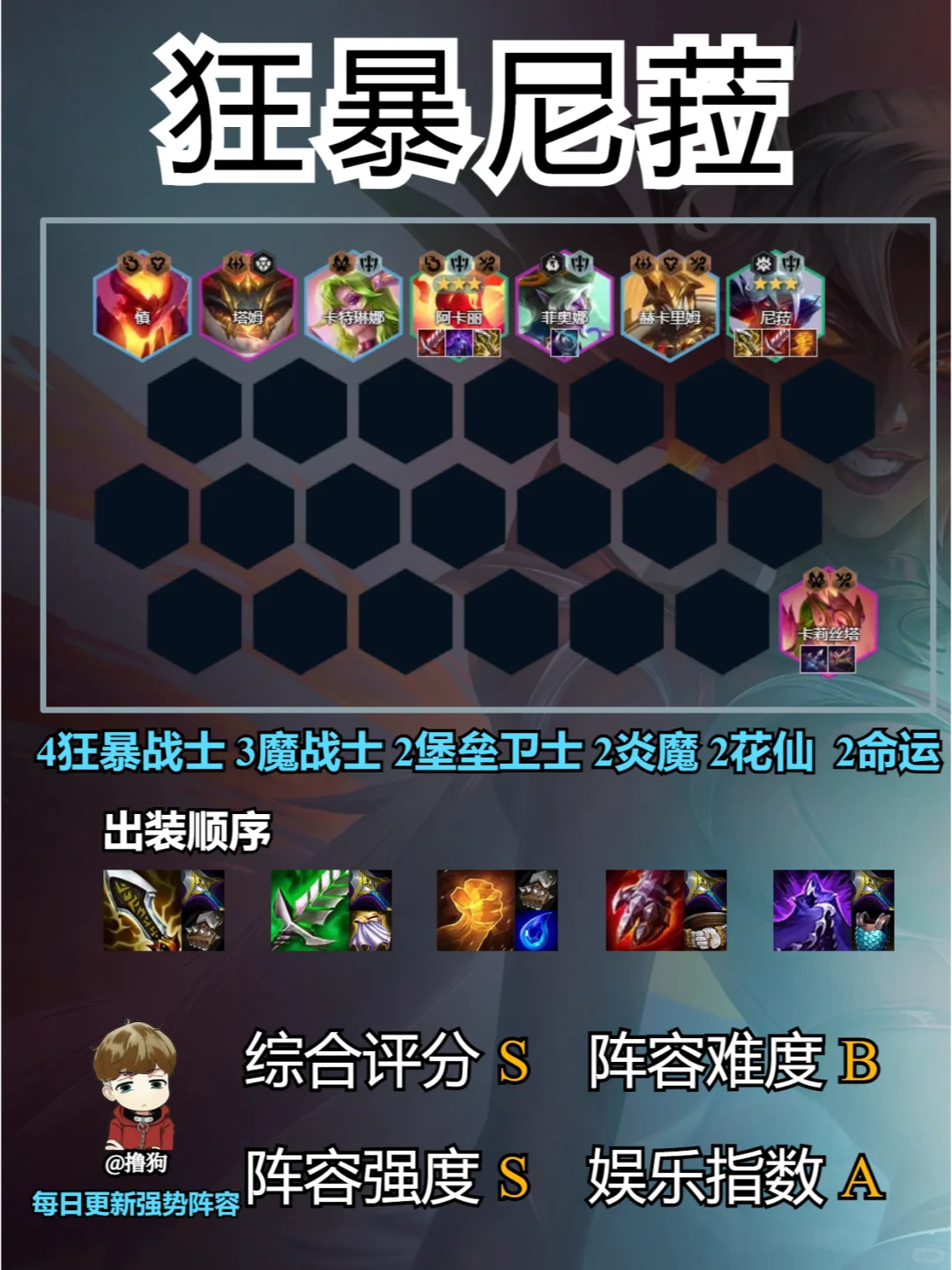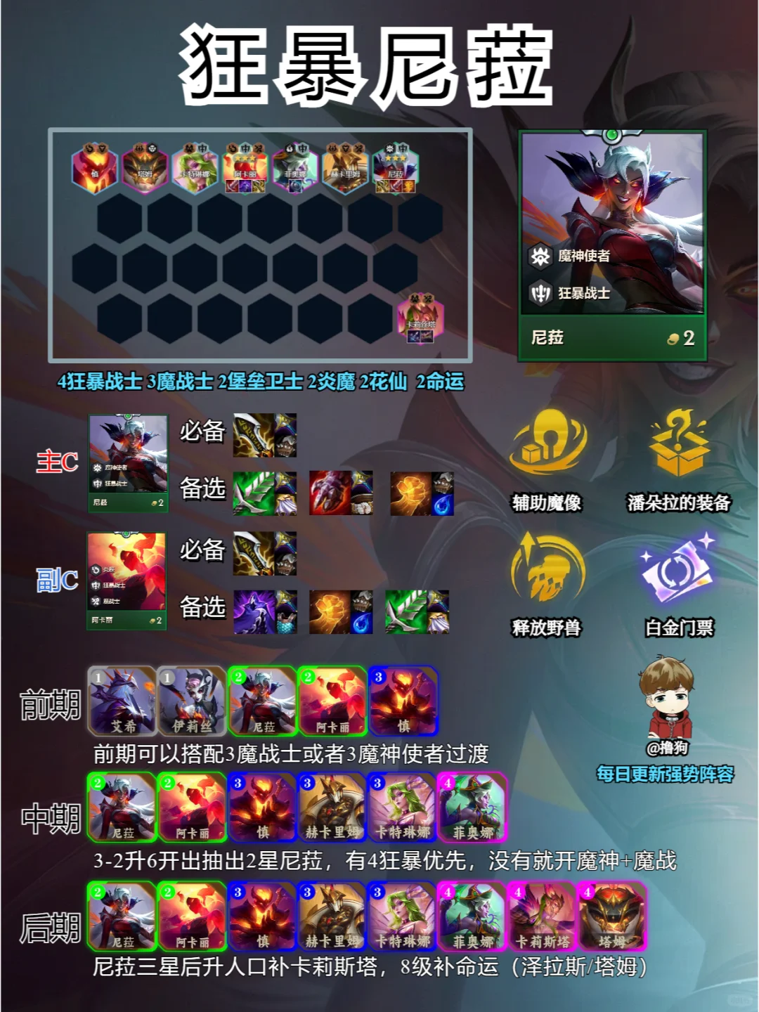 切后排如切菜,尼菈阿卡丽组合,简直是后排噩梦,除非你的后排能站着让人切,否则就得考虑下位置了~