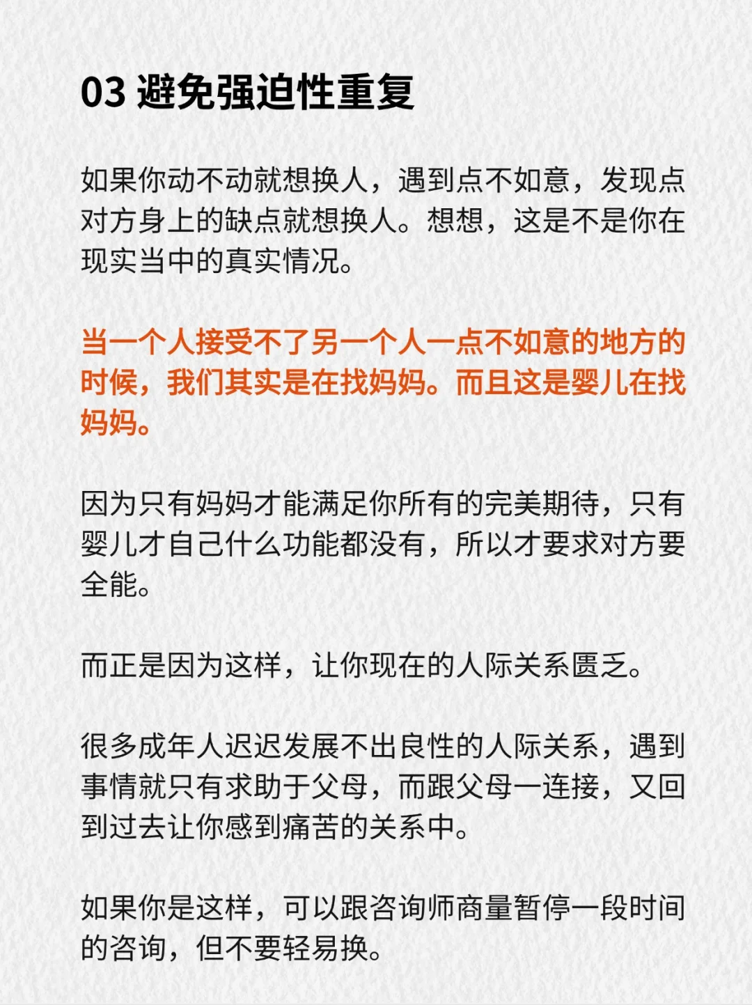 很多成年人迟迟发展不出良性的人际关系,遇到事情就只有求助于父母,而跟父母一连接,又回到过去让你感到痛苦的关系中。