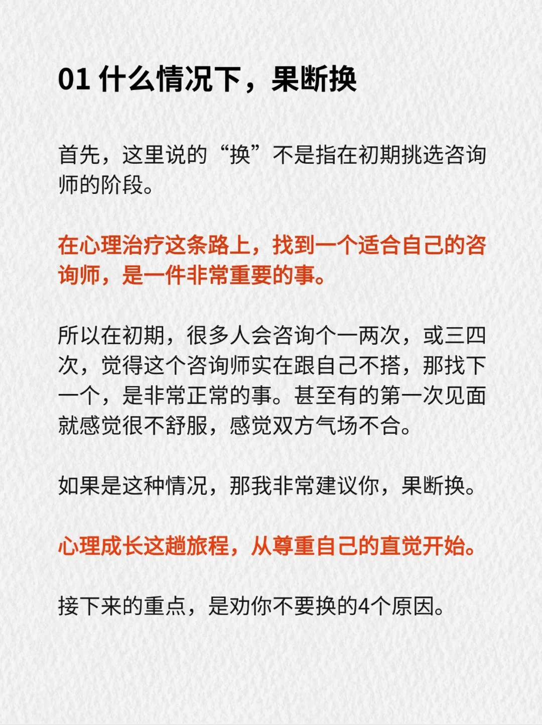 首先,这里说的“换”不是指在初期挑选咨询师的阶段。