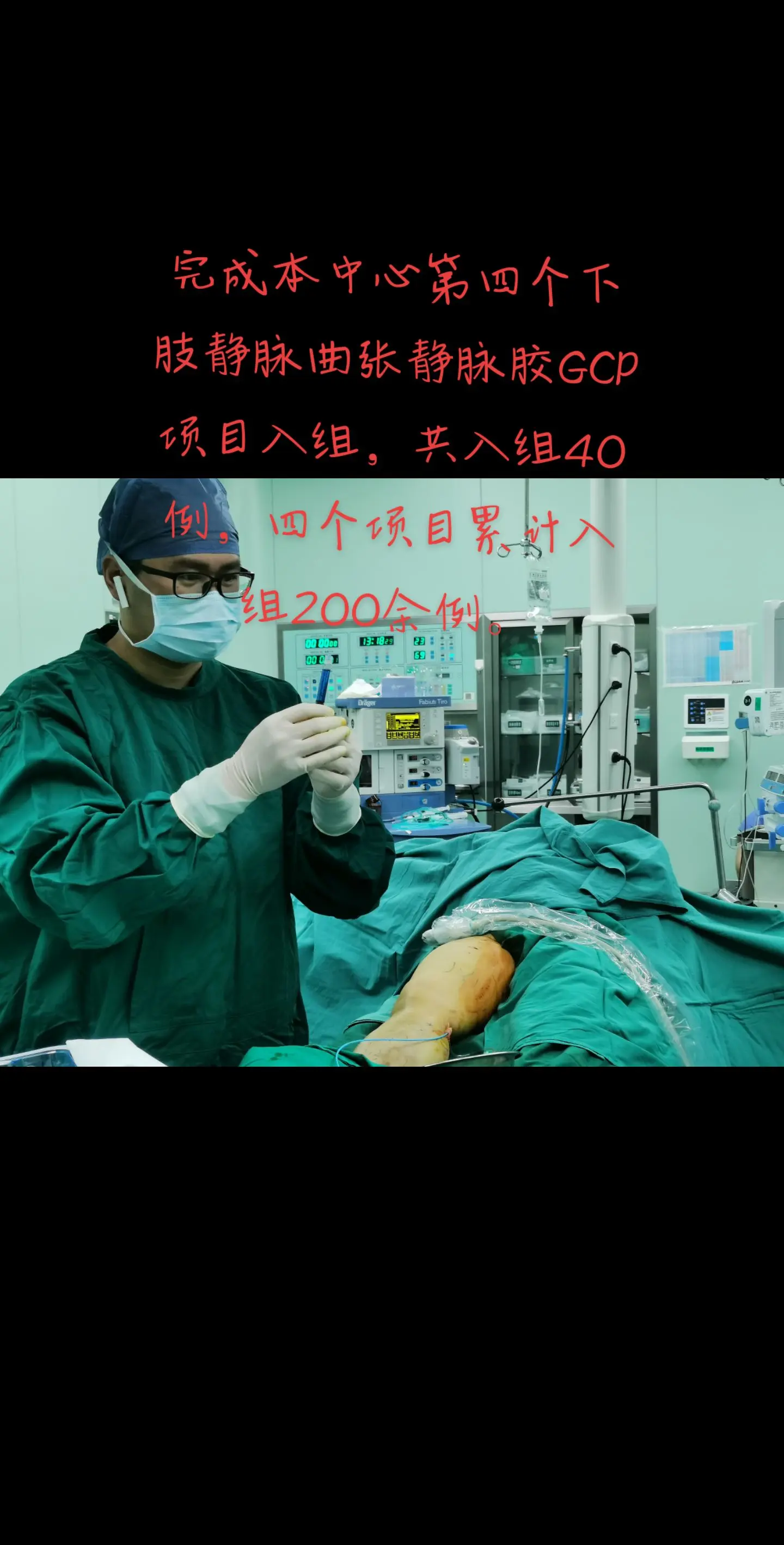 完成本中心第四个下肢静脉曲张静脉胶GCP项目入组,共入组40例,四个项目累计入组200余例