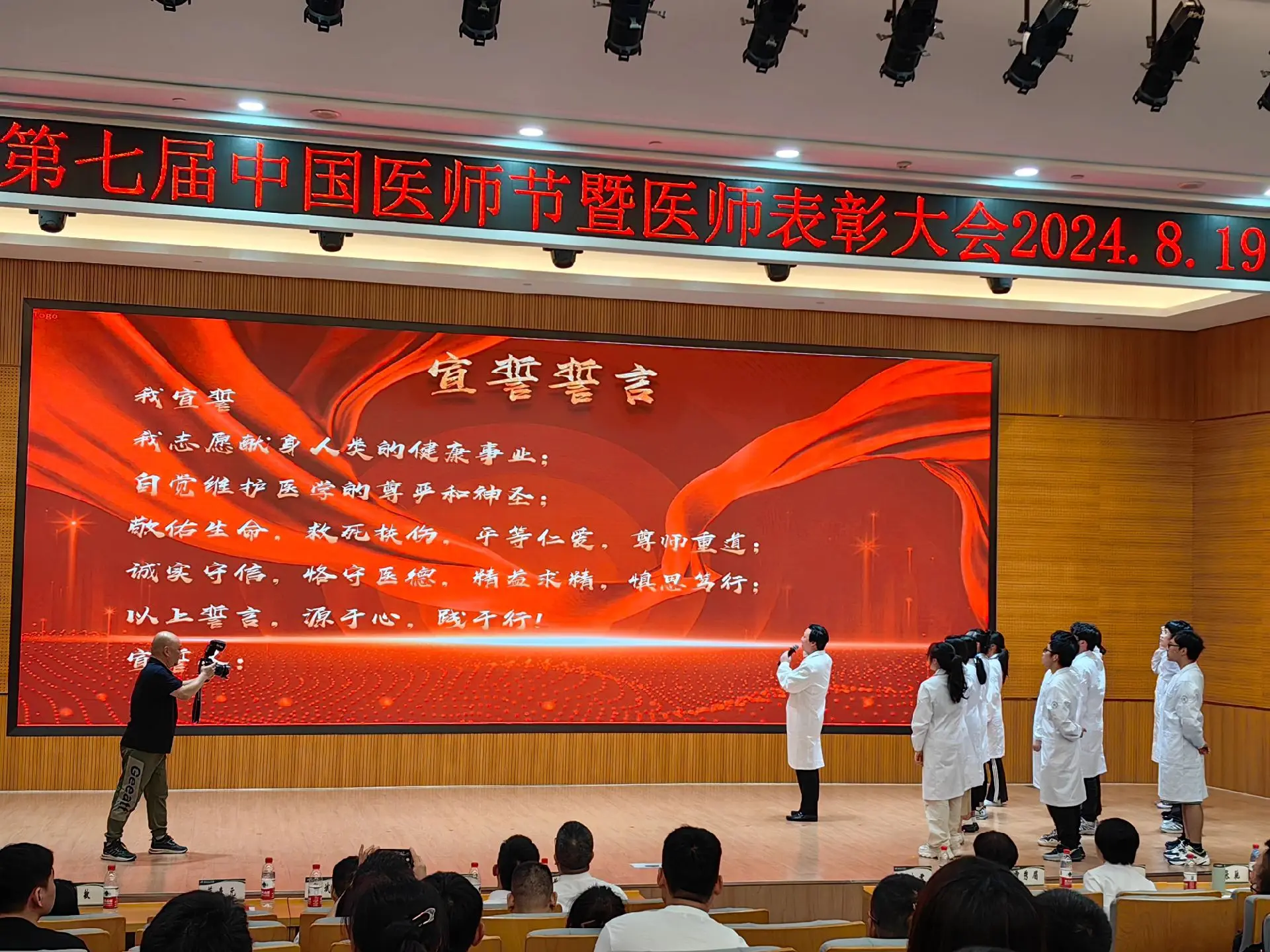 我志愿献身人类的健康事业;自觉维护医学的尊严和神圣;敬佑生命,救死扶伤,平等仁爱 , 尊师重道;诚实守信,恪守医德,精益求精,慎思笃行;以上誓言,源于心,践于行