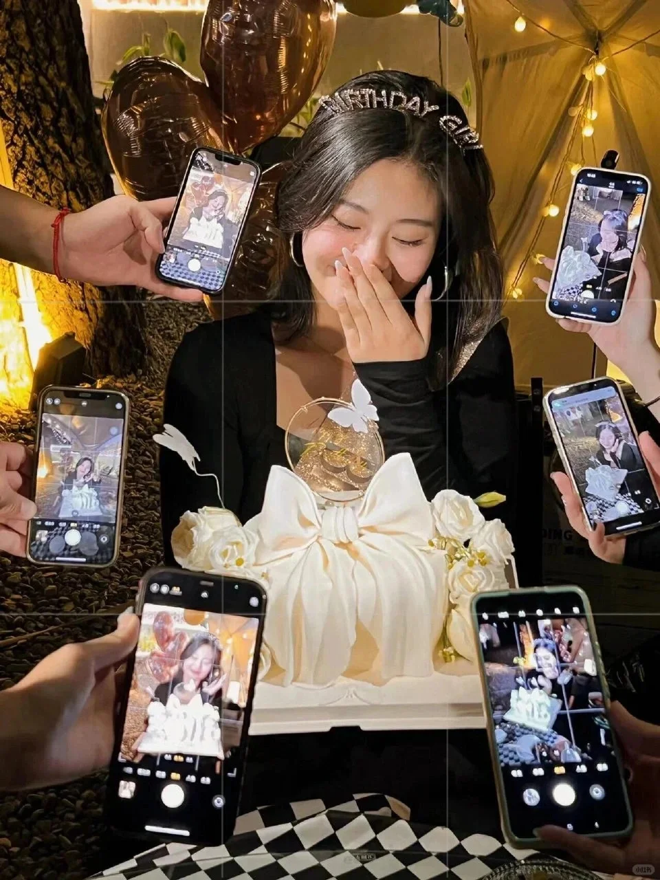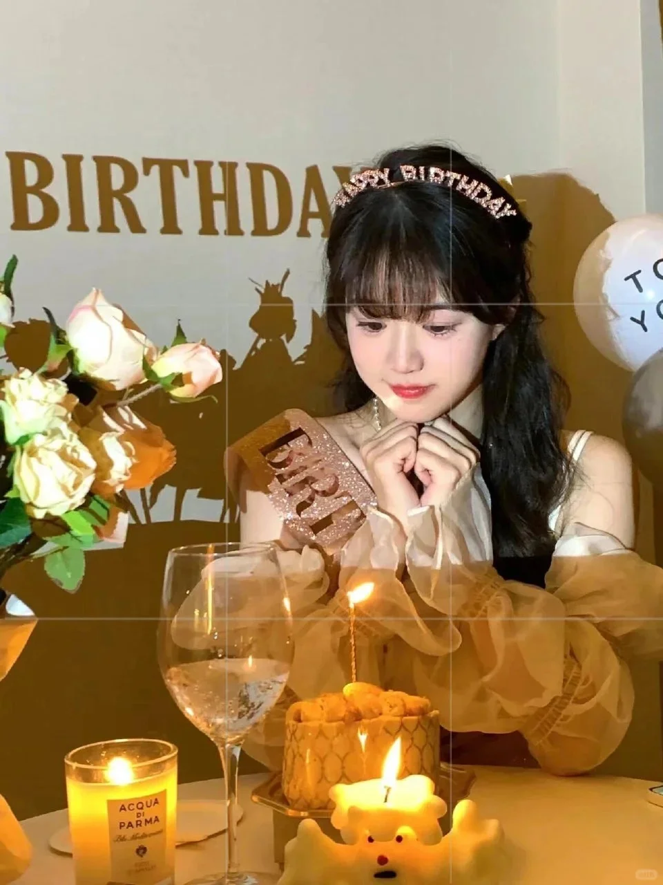 存一些生日创意拍照姿势🎂 仪式感拉满❗❗ 下次过生日就这样拍叭📸 有暖光的餐厅比较容易有氛围感~ 画面放大到1.5-2倍比较好~ 利用道具(生日头箍、生日蛋糕、花束、蜡烛)画面会更丰富~ 蛋糕花束衣服等色彩可以搭配一下~