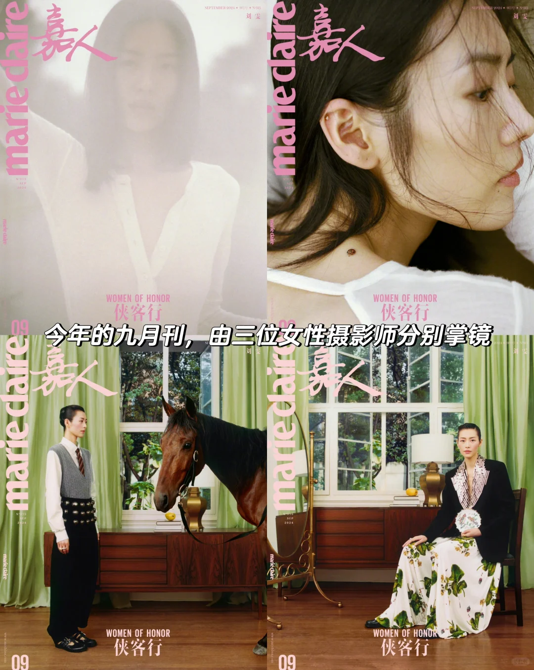 近年来,每逢金九、周年刊这样的重要月份,《嘉人》都会请回刘雯坐镇。双方的默契合作也诞生了二十四节气、武侠等一系列的经典之作,今年九月刊也给到了近60页的超长篇幅来展现刘雯的多变之美。
