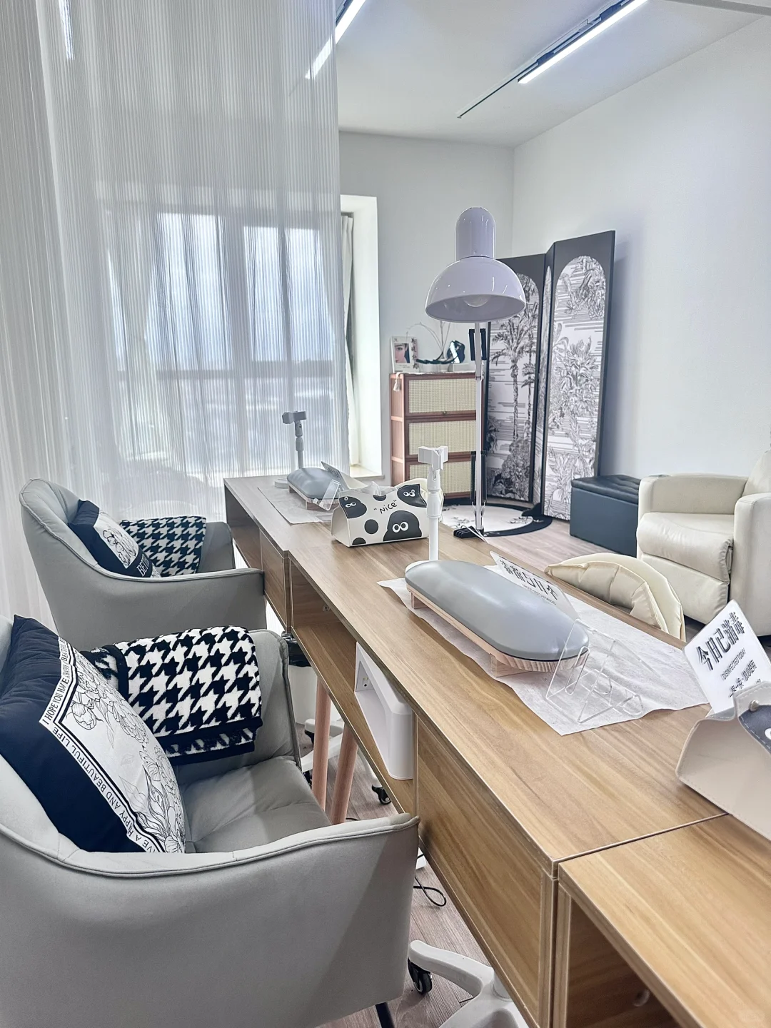 🏠:初·新中式美甲美睫店 🍃装修风格是简约大方的古风新中式风格 一走近这家美甲店温馨雅致的环境扑面而来 一坐下美甲师小姐姐就会热情端上茶水零食 在做美甲的过程中也会主动询问我意见 耐心的试颜色[派对R] 座椅和靠枕都软fufu的 椅子上还准备了毛毯给怕冷的宝宝超贴心!!店内工具都是一客一换的 座位桌子也会进行消毒 本洁癖狠狠爱住 还设有休闲零食区域 旁边有一群可爱的玩偶所以在等待的途中就不会无聊啦 🉐现在有开业199+1活动卡(美甲美睫3选2)➕开业小礼物 📍香洲区天朗海峰2栋1901