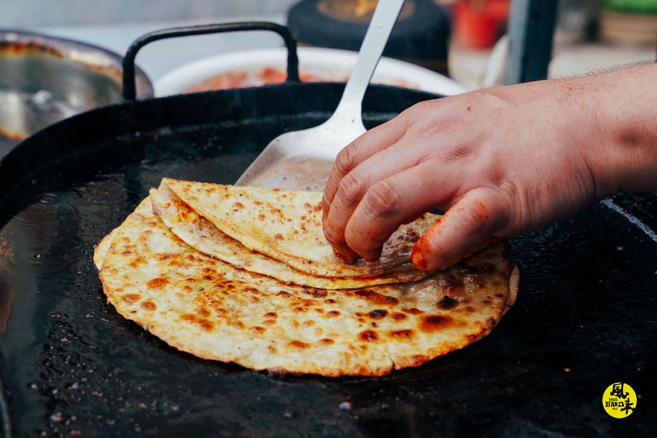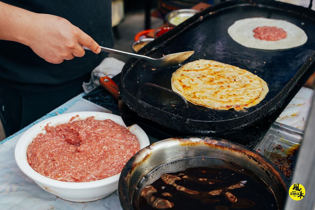 种草一家超好吃的牛肉馅饼~ 来自坊上失传已久的制作方法。两张饼皮,中间是满满的牛肉馅,不需要太多的调味,只需要一把葱花和辣椒孜然粉就够了,饼皮煎到焦黄,肉香四溢,记得再配个鸡汤砂锅。【坐标:社会路,就在路边一居民楼下,露天摊位比较好找,每天下午4点开始营业!】
