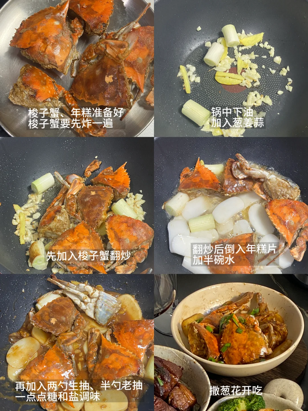 梭子蟹|年糕|蒜末|葱段|姜丝