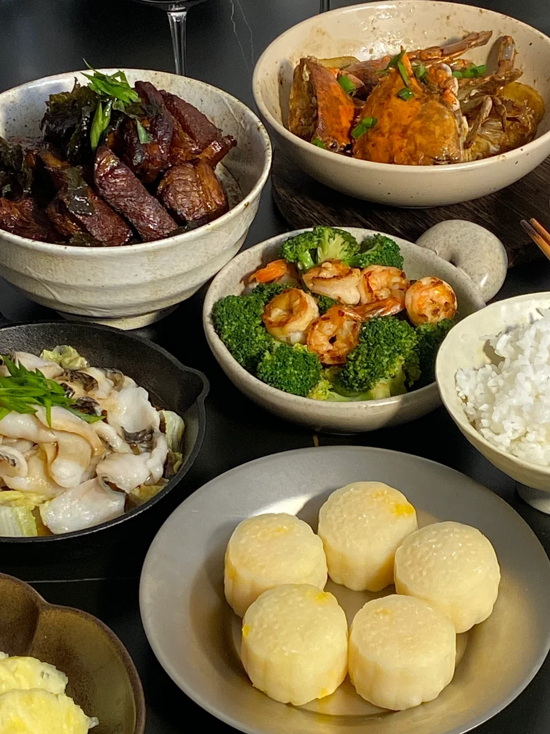 中秋菜谱📜茶香排骨年糕梭子蟹葱油鱼片🥮