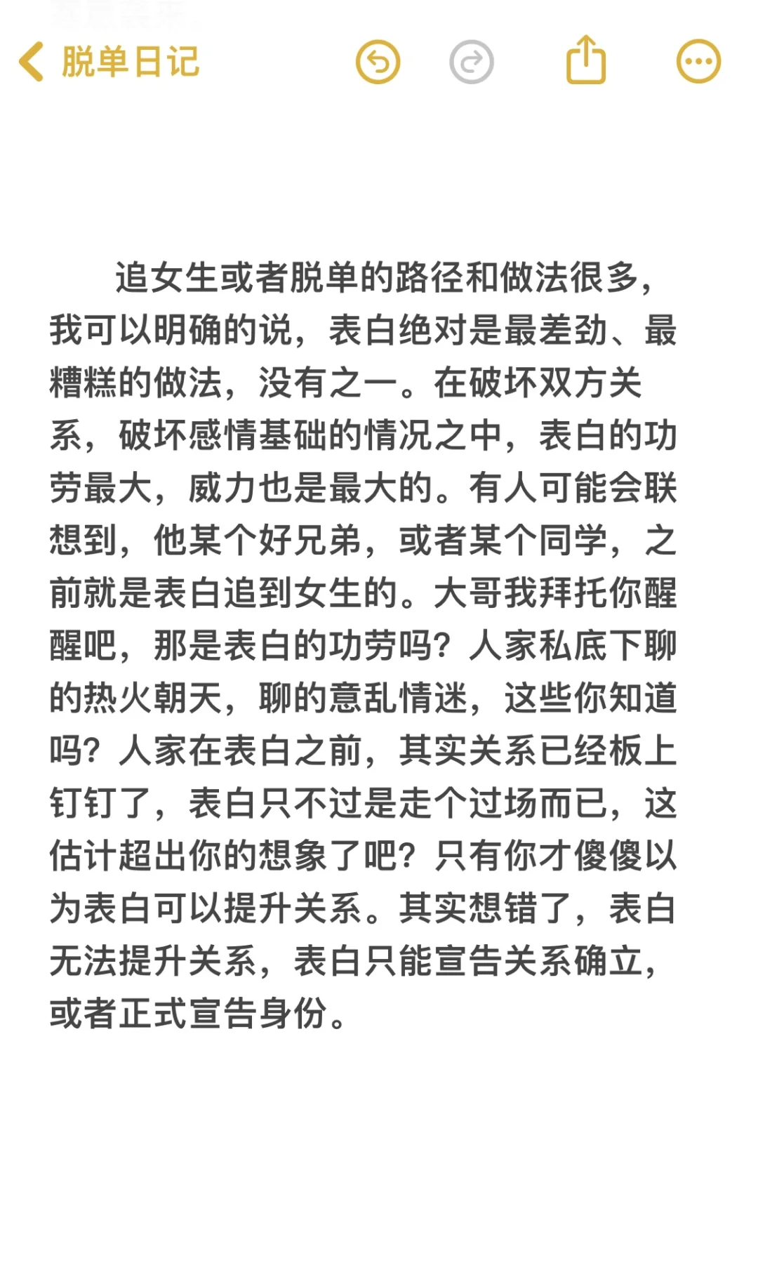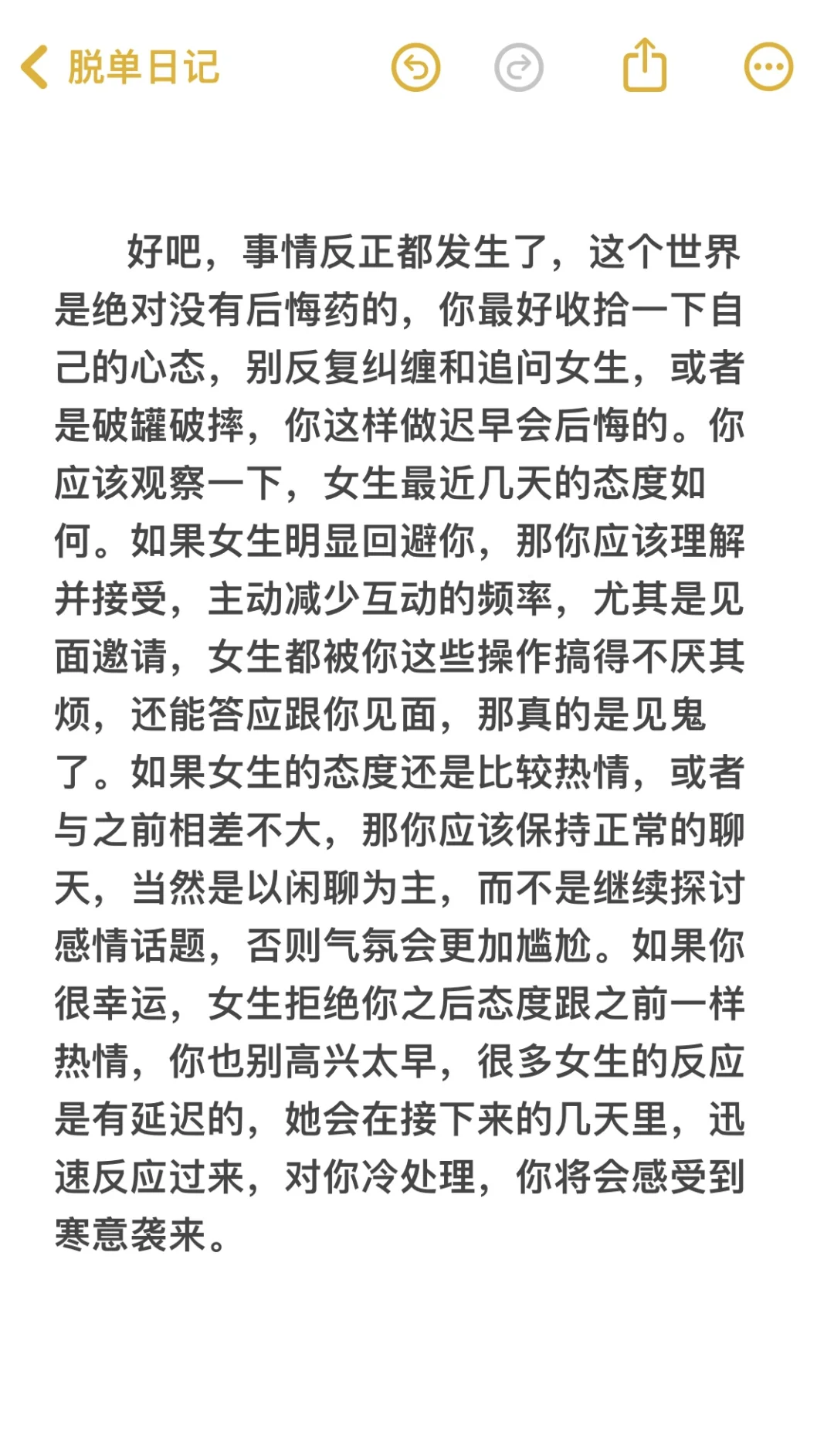 果然是你 1 2024-09-01 13:58 哈哈哈哈我表白被婉拒了,我说和以前一样做好朋友吧,她也同意了。表完白以后聊天好像没包袱了,和刚认识一样又能畅聊了,约饭,约酒,看电影,出去玩也比追求过程的气氛好了很多。