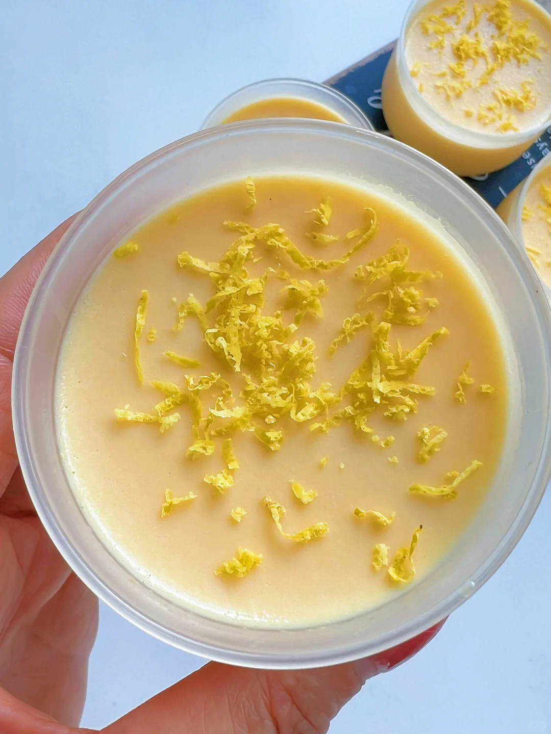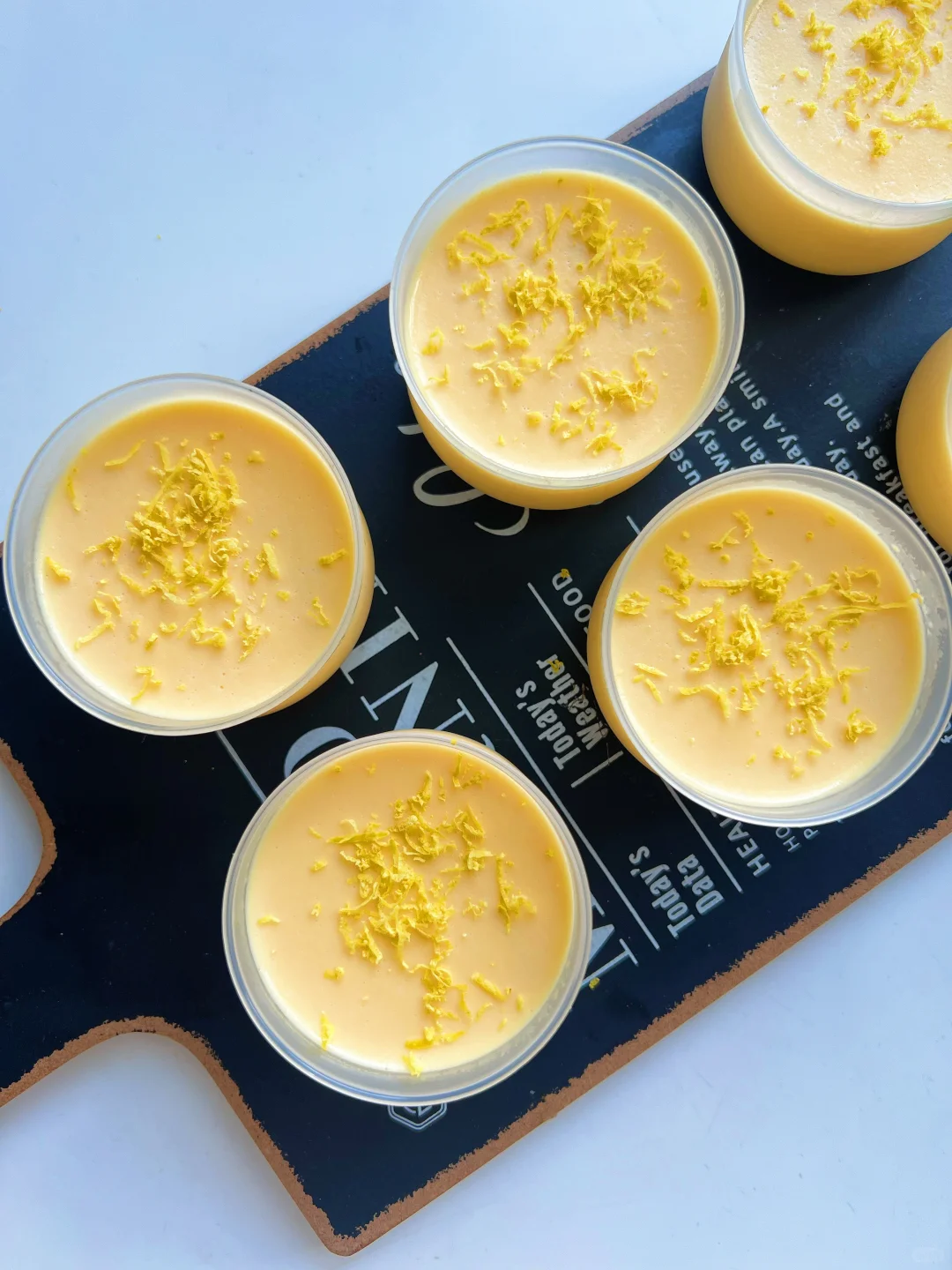 8️⃣倒入杯中,冷藏4小时以上定型,撒一点柠檬皮屑装饰即可
