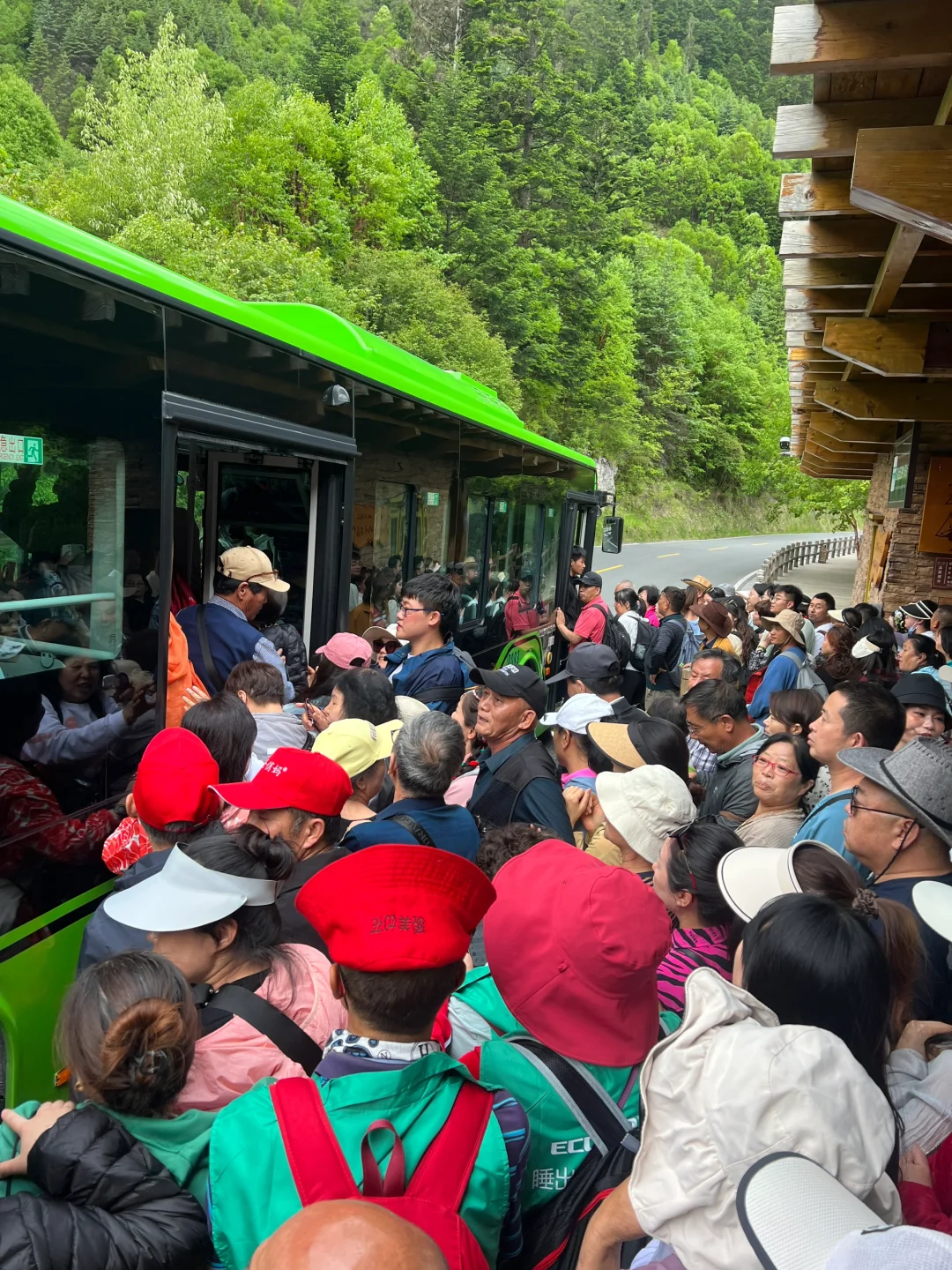 [二R]景区内部观光车车次少,乘车点没有工作人员维持秩序。插队、推搡、互骂等情况屡见不鲜,热门观景点(五彩滩)坐车像逃难一样狼狈。