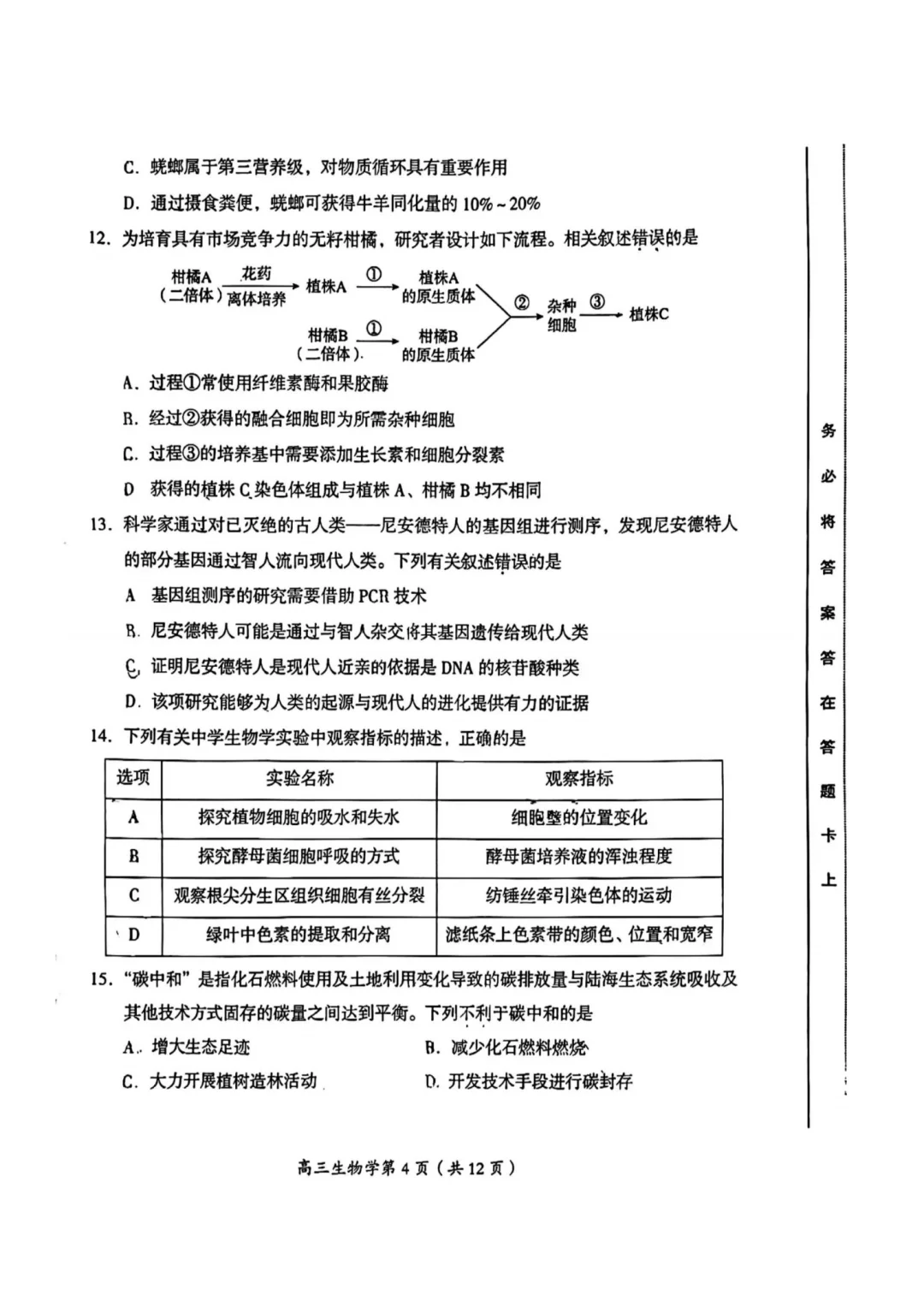 高考生物|房山区高三开学考练习