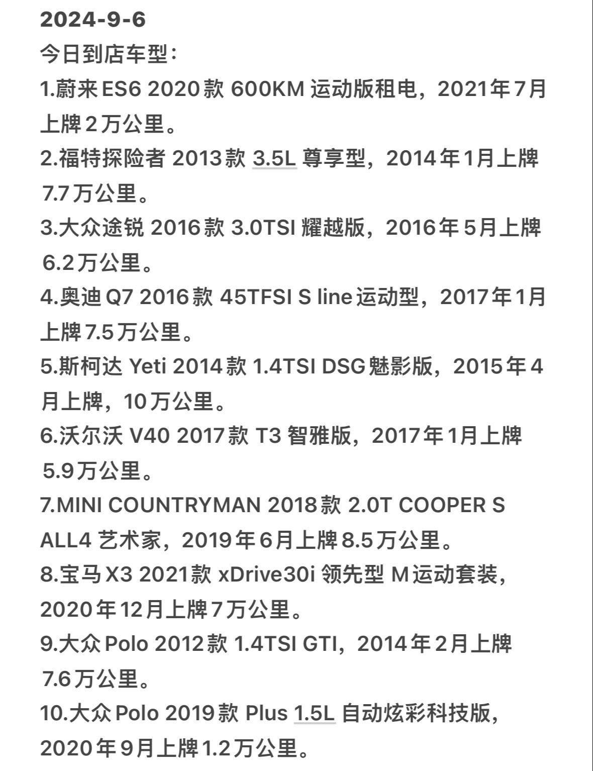 2024.9.6。今日到店车型,车辆详细信息已放置作品最后一页,感兴趣...