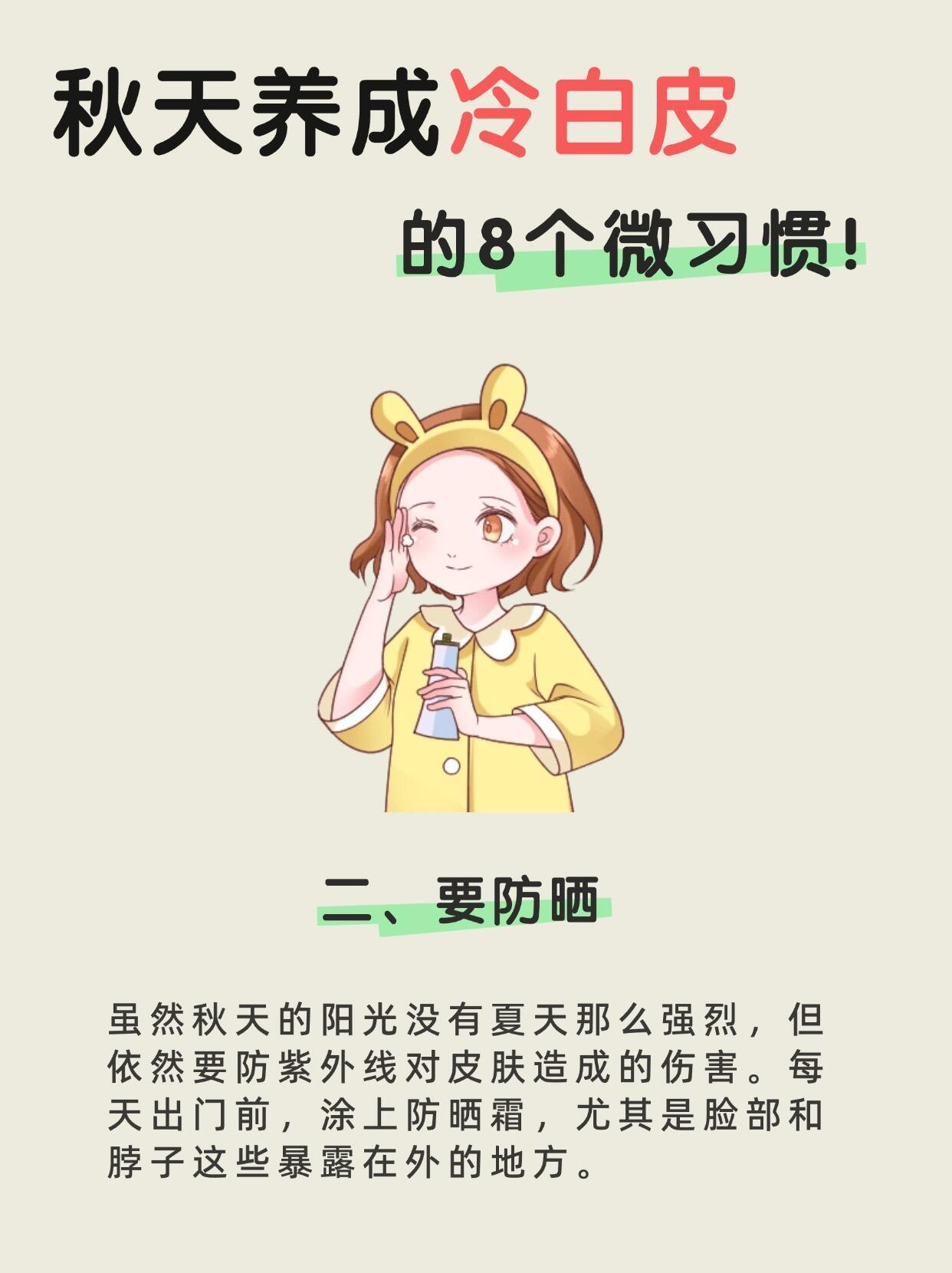 秋天养成冷白皮的10个习惯。冷白皮美白牛奶肌变白黄黑皮怎么变白