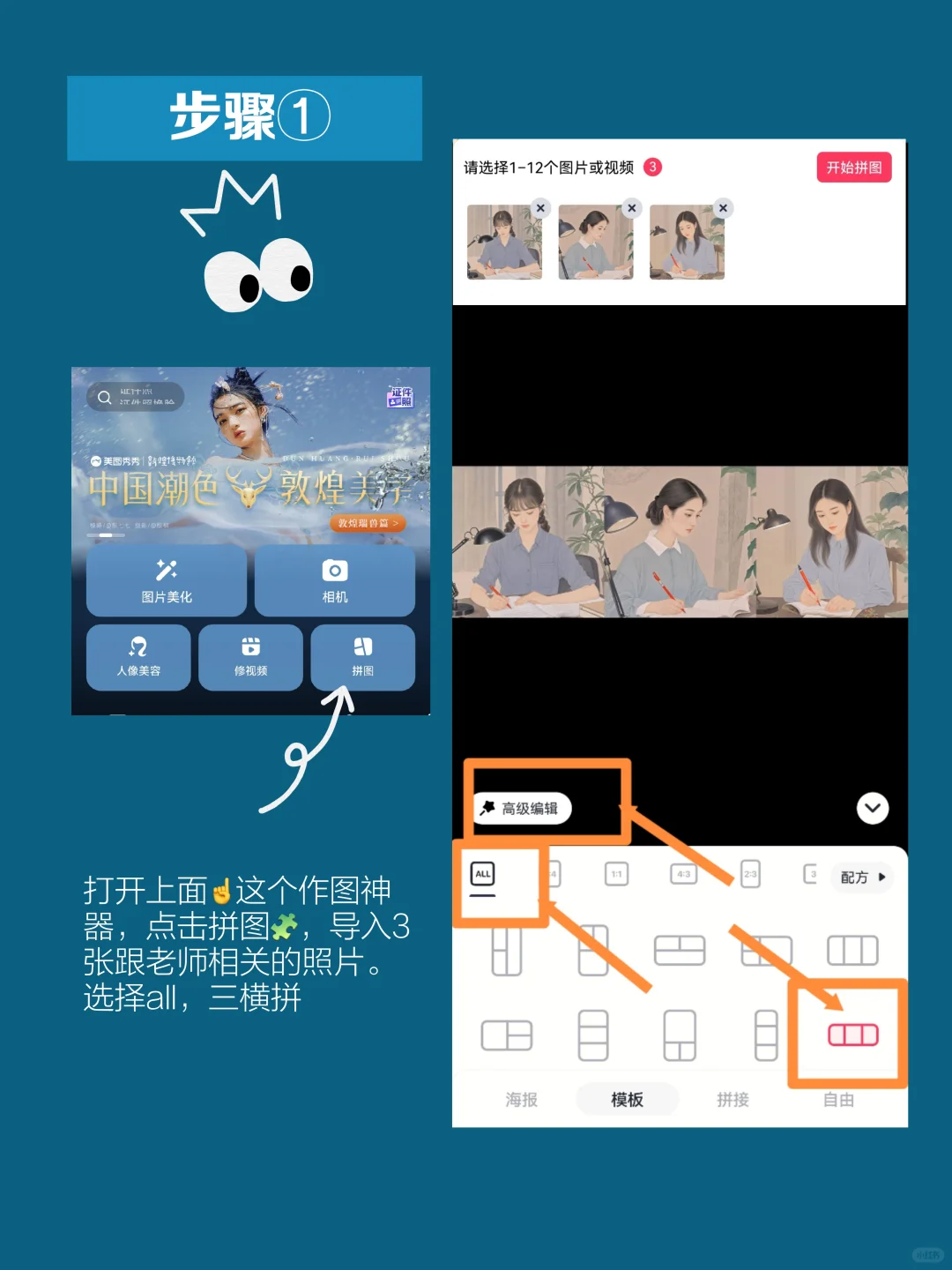 今天的教程用到的软件是美图秀秀,操作步骤在图片中都一一的展示了,而且还有简单的文字说明,如果你学会了,就可以举一反三自由发挥啦。实在看不懂的可以蹲蹲我直播间。