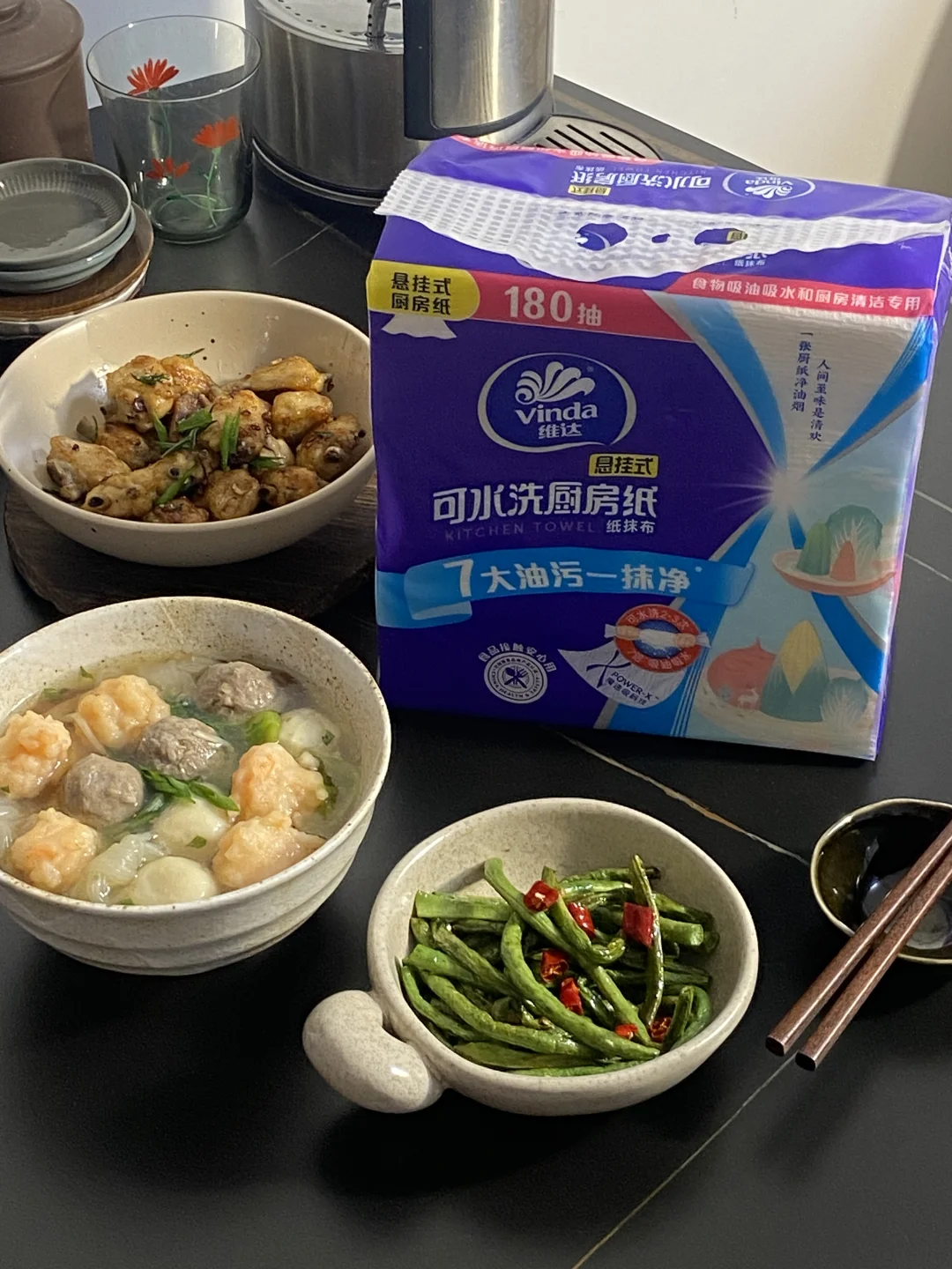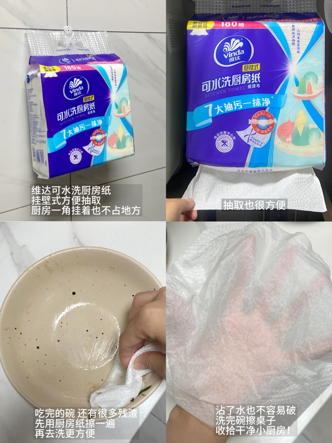 今天有好帮手维达挂式厨房纸,单手抽取方便易收纳。特别提示用油要注意油水接触容易飞溅,所以菜和肉建议先用厨房纸擦干水分再下锅,维达这款可直接接触食物的就很方便;做饭过程中我也喜欢保持厨房干净,擦过青菜的厨房纸也可以随手拿来擦灶台上的水渍、油渍,这个纸很厚实,水洗2、3次也不容易破。收拾干净小厨房才算一顿饭的结束!