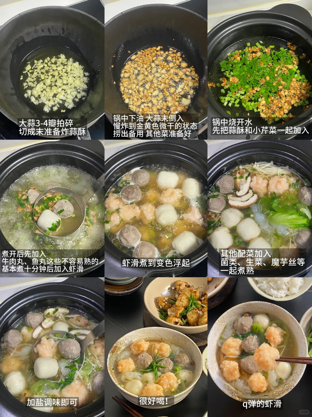 虾滑|牛肉丸|鱼丸|菌菇|魔芋丝|生菜|蒜酥|小芹菜|香葱