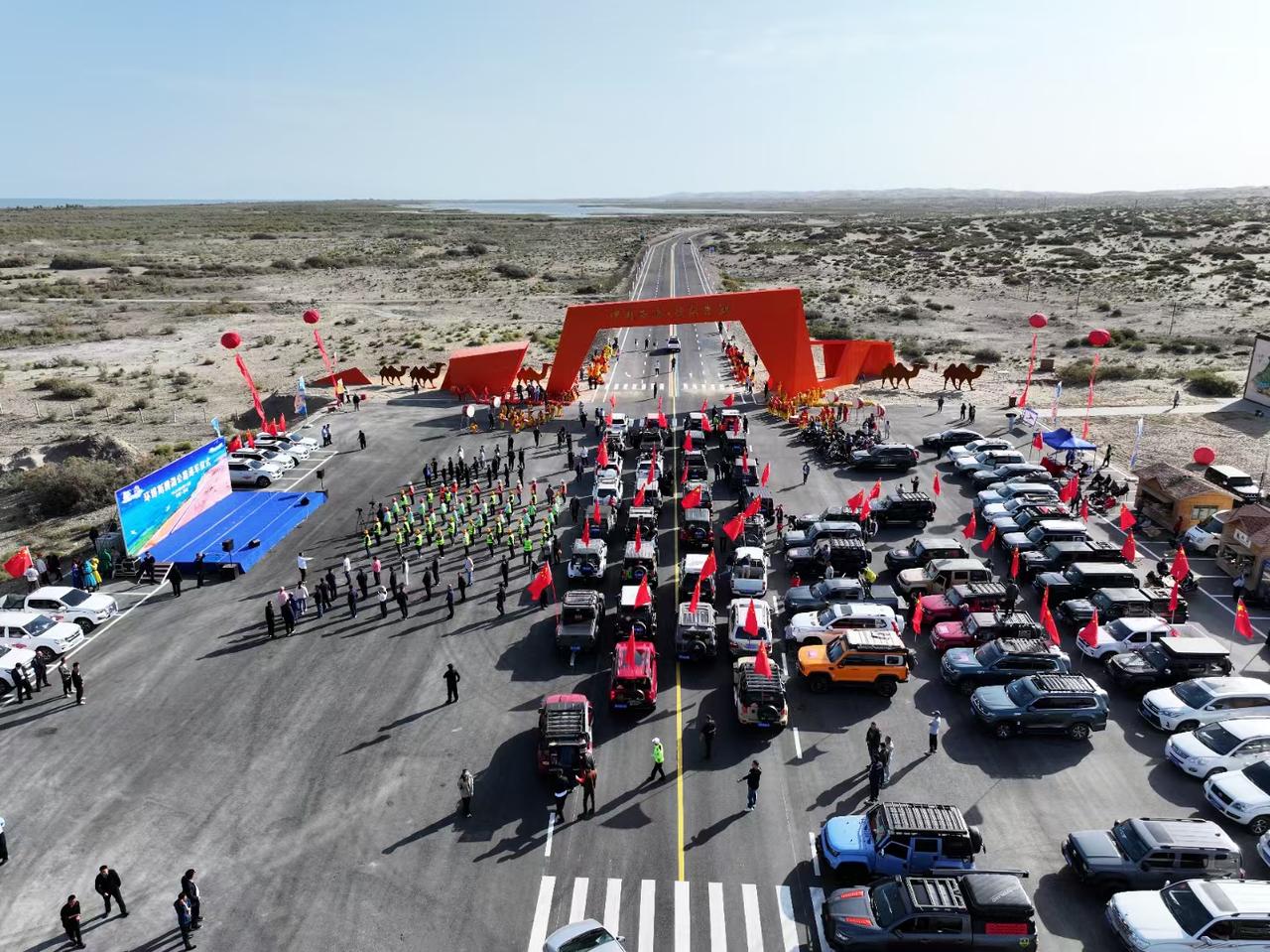 博斯腾湖环湖公路通车仪式(扬水站)#大好河山一起打卡 #博斯腾湖 #最美的风景在路上