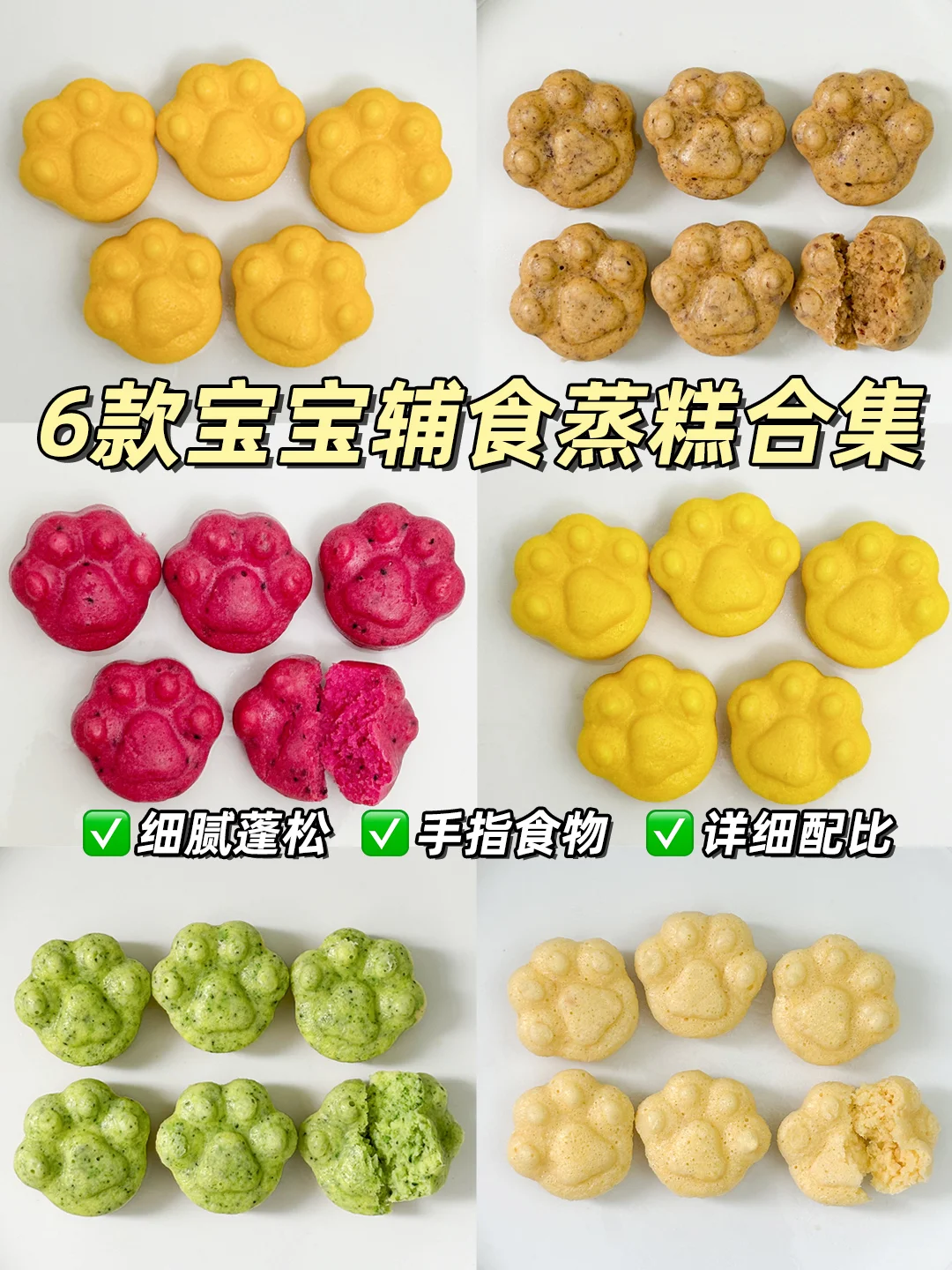 这次总结分享的6种口味,都比较容易上手的~细腻蓬松,食材自带的微甜口感~宝宝也比较容易接受。同时可以作为手指食物,锻炼宝宝的咀嚼能力和抓握能力~