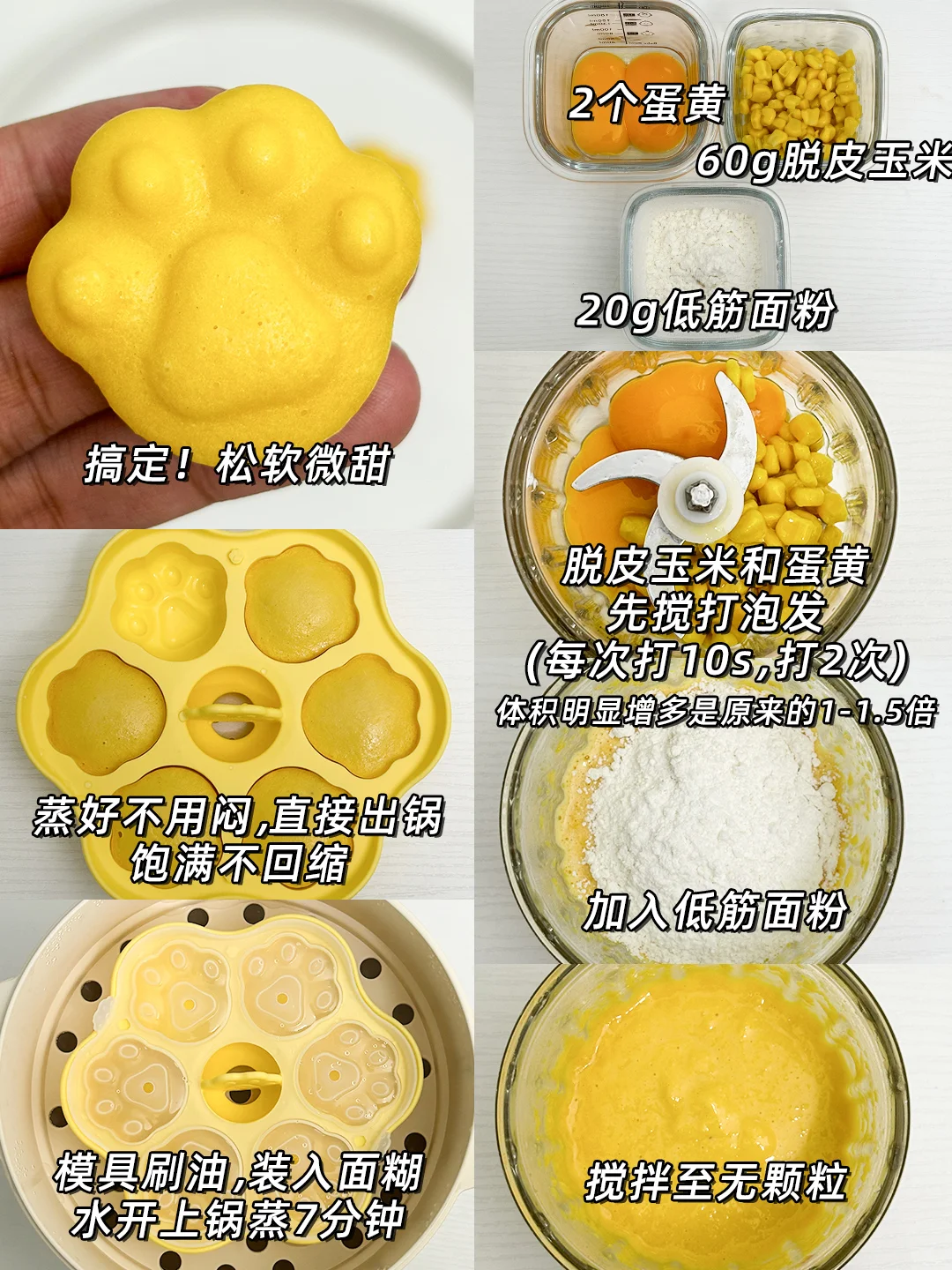 ✅玉米蒸糕:60g脱皮玉米、2个蛋黄、20g低筋面粉
