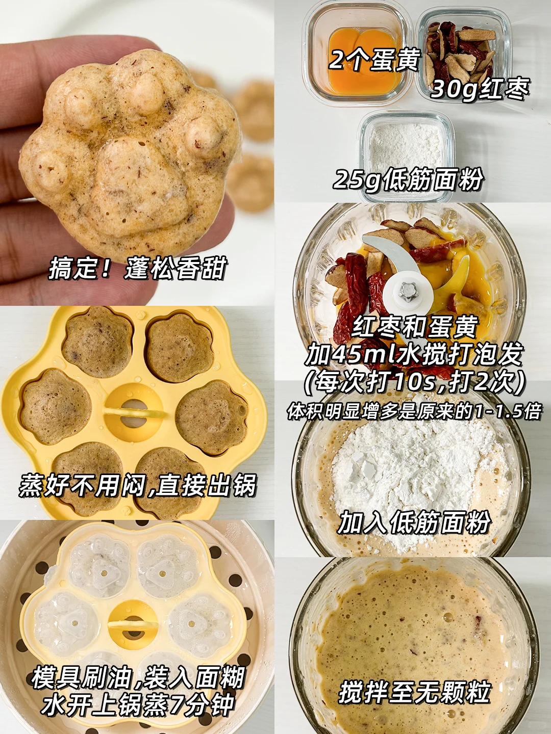 ✅红枣蒸糕:30g红枣、2个蛋黄、25g低筋面粉