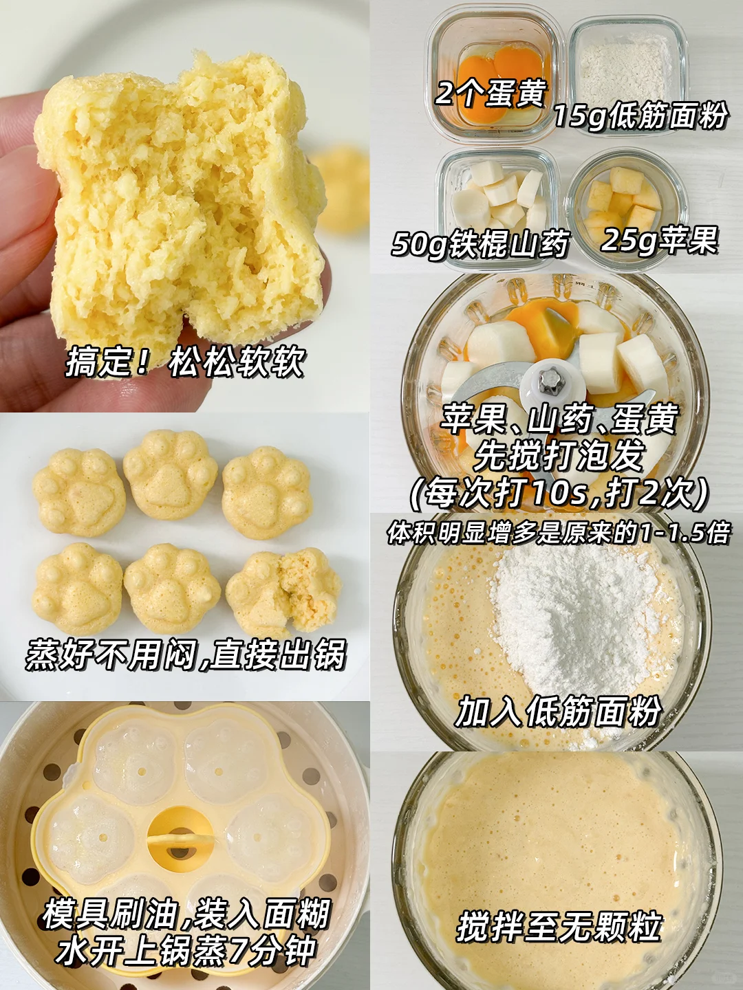 ✅南瓜蒸糕:40g熟南瓜、2个蛋黄、25g低筋面粉