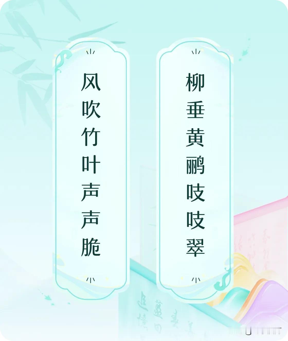 #对对联飞花令#上联:风吹竹叶声声脆,下联:柳垂黄鹂吱吱翠。我正在参与【对对联 飞花令】活动,戳这里👉🏻:和我一起参与,分50000元现金🔗。