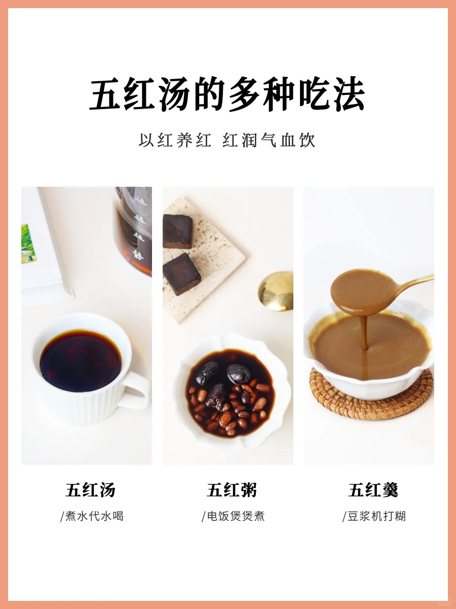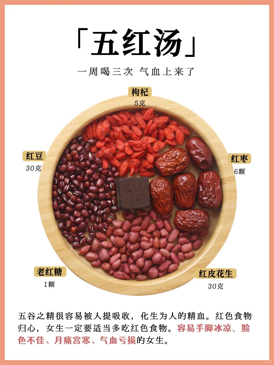 ◾️频率:五红汤偏温,不可每天喝,一周喝2-3次即可。