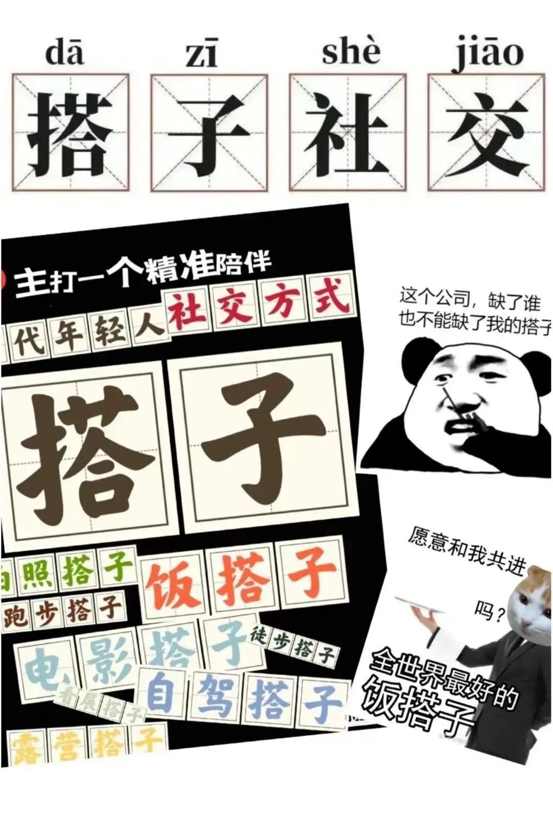 搭子 搭子火了,火的一塌糊涂 本来是一个盛物的器具 在不知不觉中延伸了用途 轻松的进出把所谓的社交展现的淋漓尽致 那种搭在肩上用以盛物已成了过去式 总有精英们发现它的蕴藏更丰富 被现代人用超值冠以精辟 饭搭子、睡搭子、逛街搭子… 搭子里装搭子 搭子里有人情世故 搭子连搭子 搭子里装满社会百态 试看,找搭子的广告在媒体上排满整版 难怪搭子在网络上是社交的热词 过去的搭子里或装琐碎或装钱币或装口粮 它是主人的伙计,搭在肩上尤为遢实 它的每一格里总有玄机 好比充满了乾坤大挪移,而平时藏匿 搭子一上肩就以为主人为了生活去奔赴 而现在的搭子只是个说辞而非器具 这个说辞里演绎的花样百出 能工巧匠们还在为推陈出新努力继续 用补丁把搭子补了又补 有谁知道现在的搭子怎么才能物超所值 怎样才能在生活中发挥它正当的用途 搭子来搭子去,搭子里装着不满足 现实会告诉我们,搭子到了一定的程度 肯定把它的作用会落到实处 有人会用担当背起搭子而挺起脊梁骨