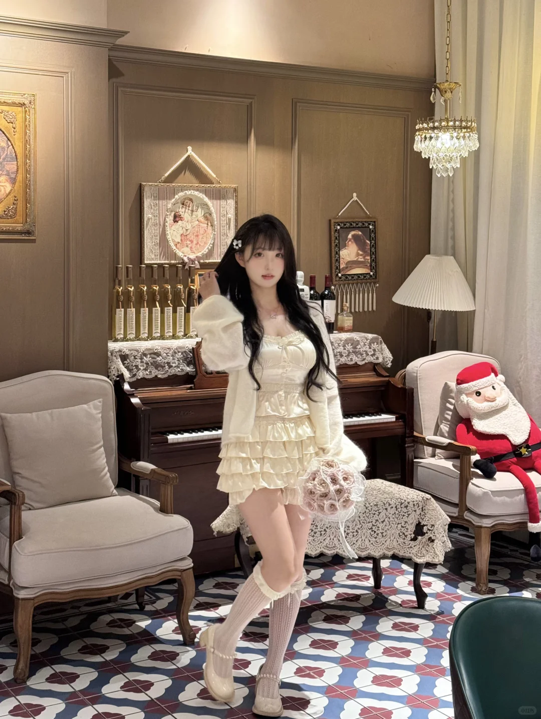 优雅白裙少女,静坐咖啡馆,时光静好