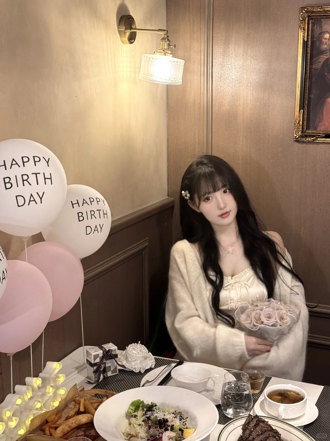 超级i人到底怎么在外面过生日啊! 年龄越大越内向 今年过生日都选了最小的花和蛋糕 餐厅下班之前吃的最后一顿饭 等别的客人走了我才拍照[捂脸R]我老公比我还i 我俩偷摸的生日歌都不敢唱哈哈哈 一生不能大方的符女士~(今天的小裙裙也好喜欢!