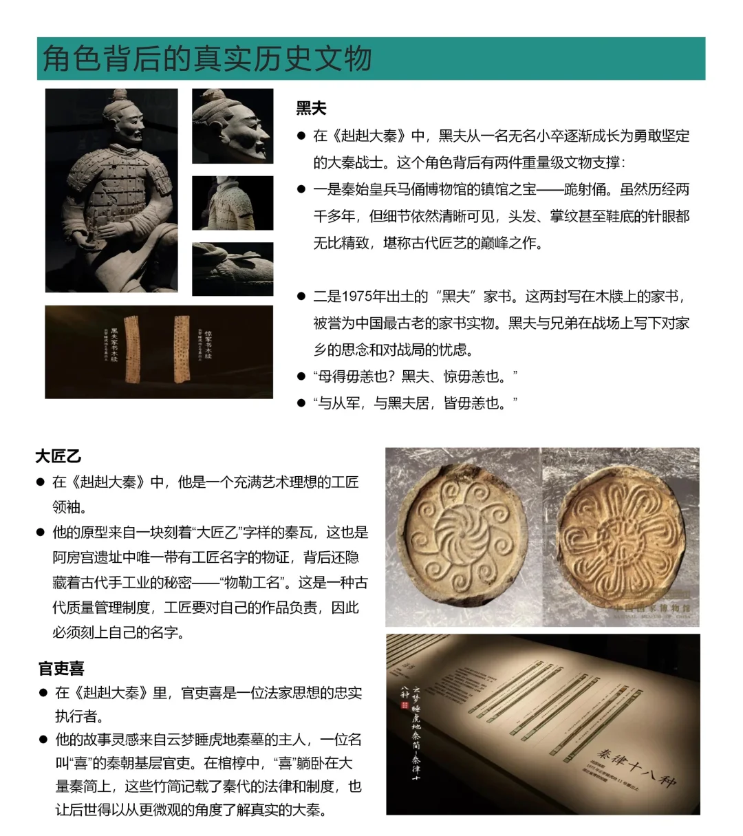 角色都有历史文物的依托,从男主角黑夫到太匠乙和、官吏喜,他们的名字都从文物中来,都是历史上曾经真实存在的活生生的人!
