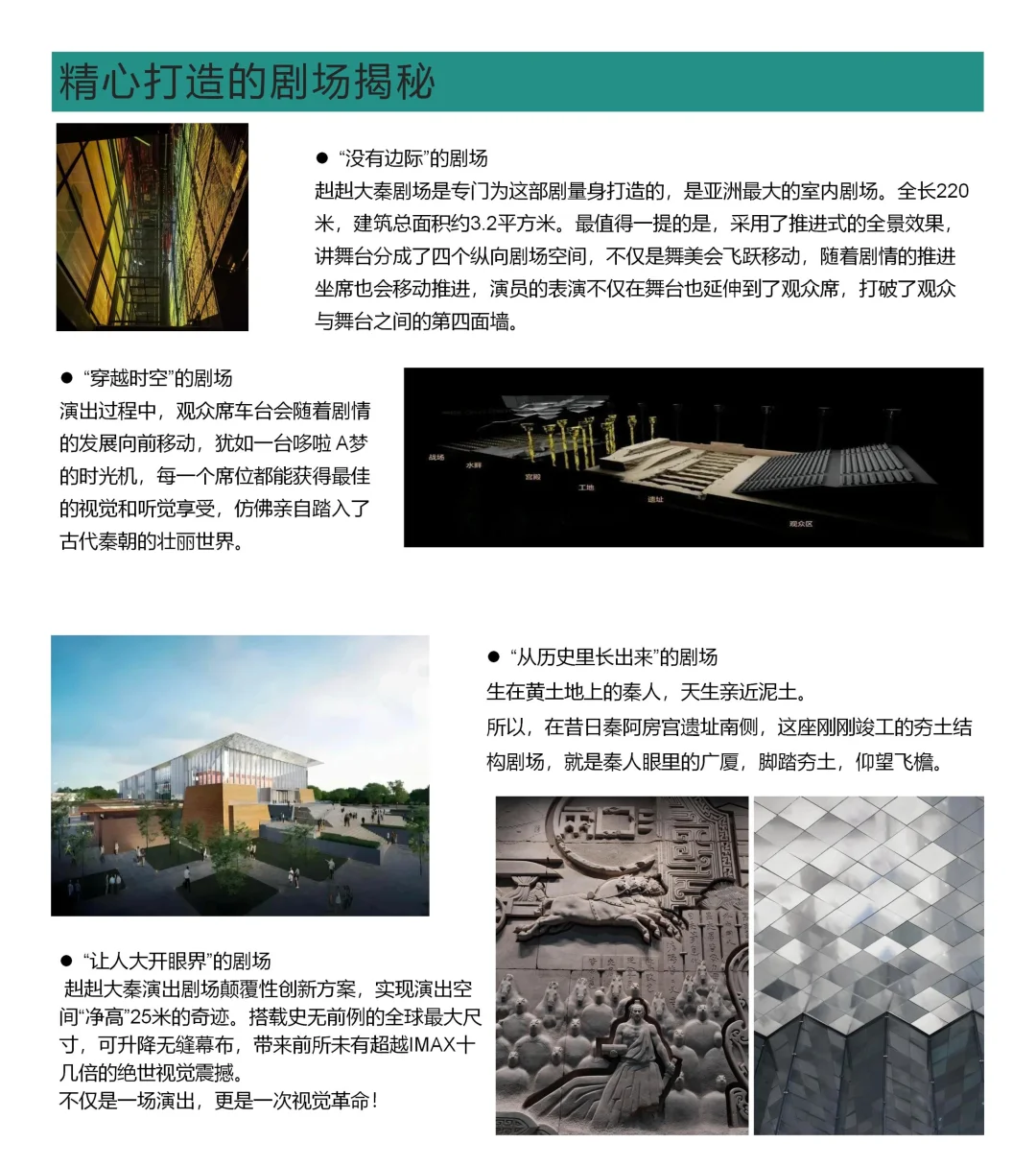 《赳赳大秦》专门量身打造了亚洲最大的室内剧场,全长220米,建筑总面积约3.2平方米。