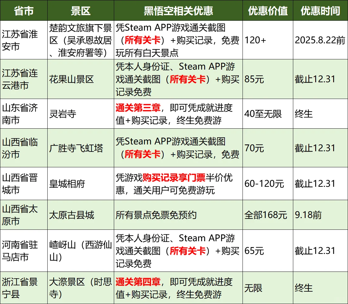 📍山西当然也不能缺席,临汾广胜寺通关免费;晋城皇城相府有购买就半价、通关免费。