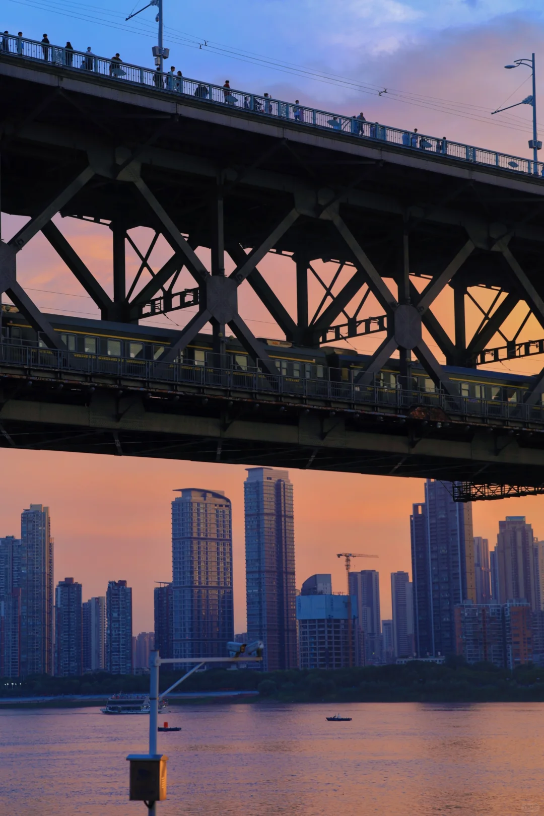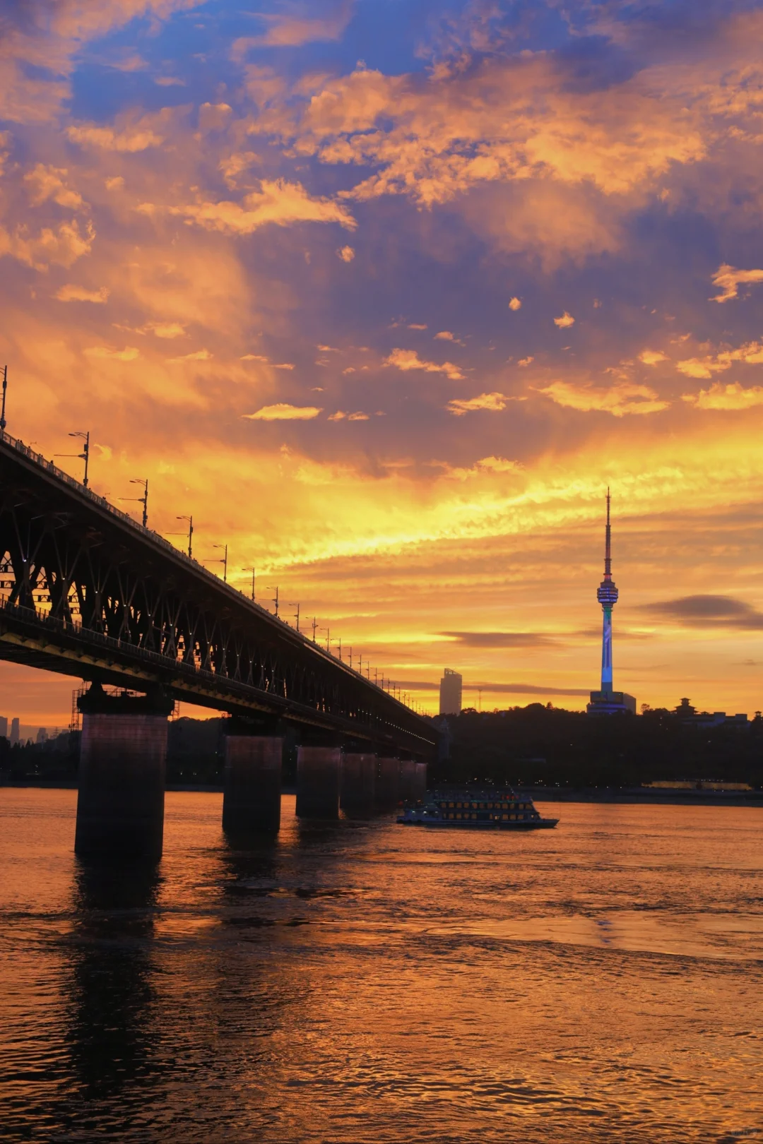 傍晚吹吹江风,在长江大桥下看一场浪漫的日落🌅真的好舒服