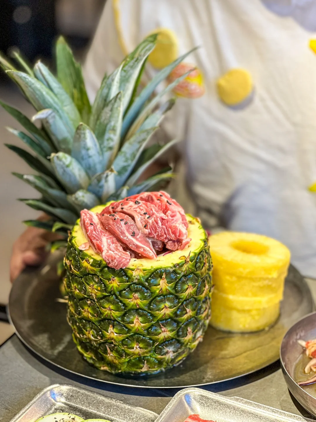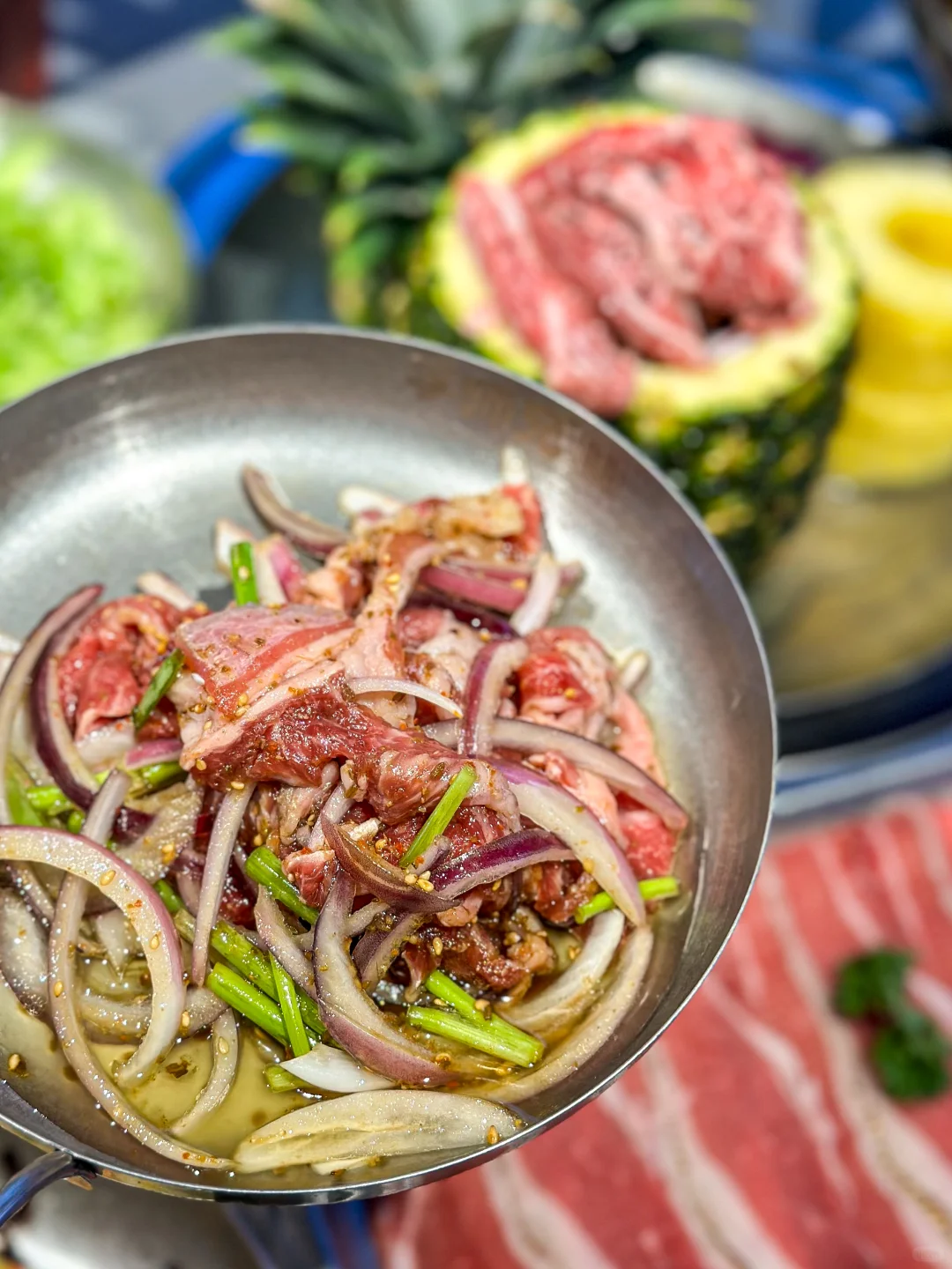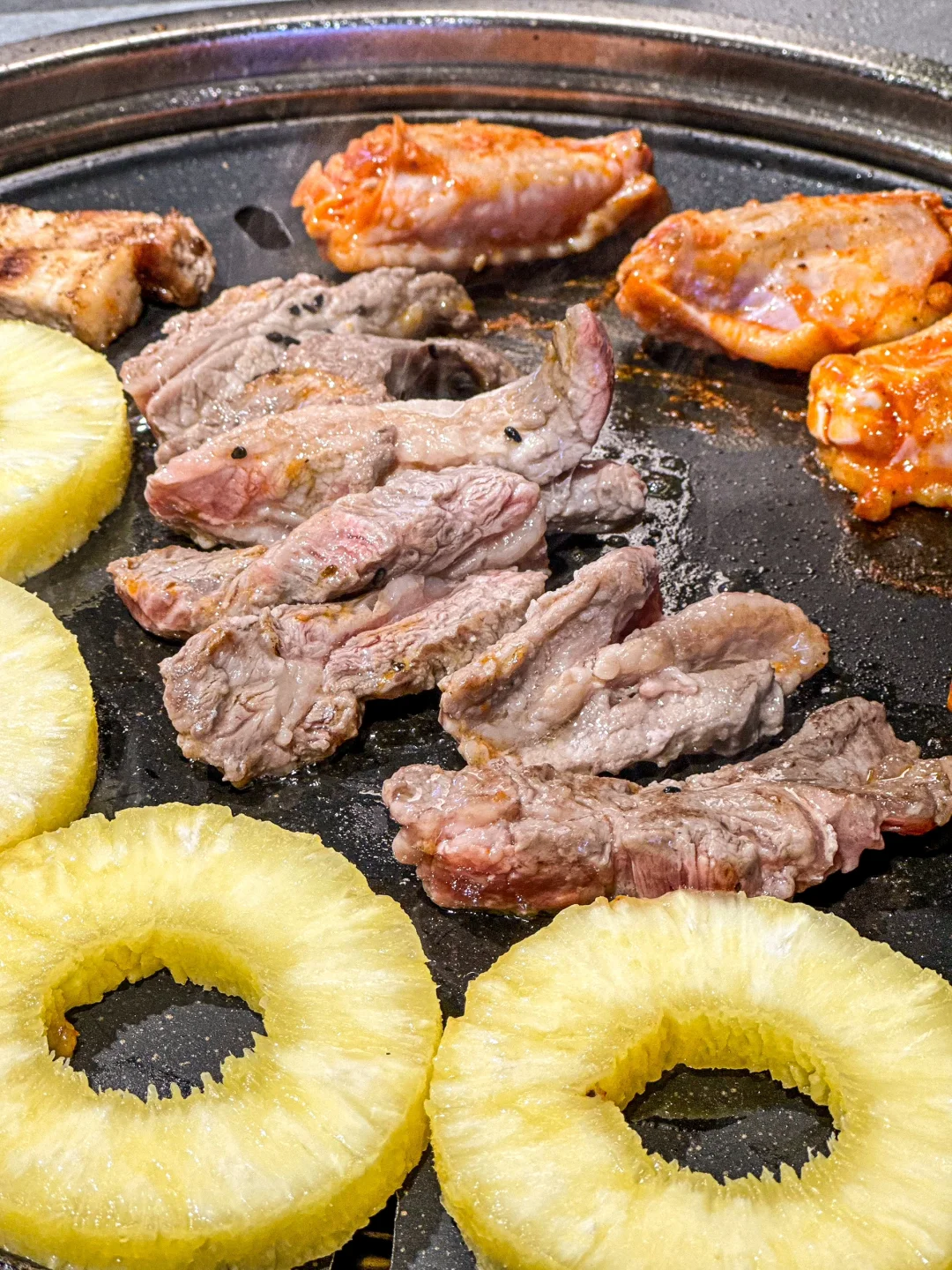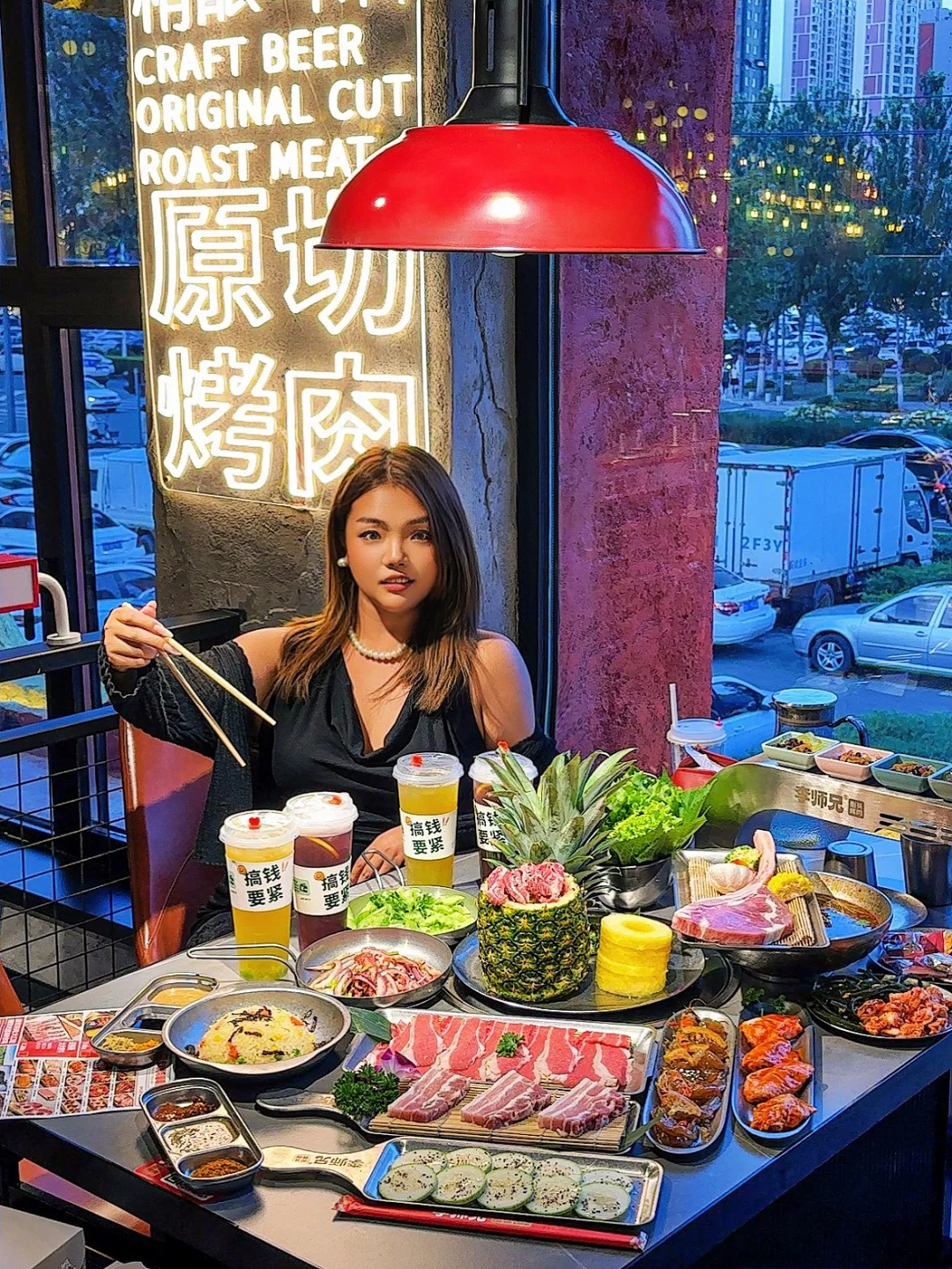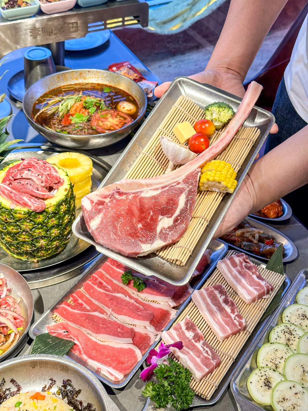 啊啊啊在长春!不敢想这得有多好吃!! 比手臂还长的战斧牛排整块烤 也太香了叭~ 🌟点单攻略🌟 ✅招牌凤梨安格斯牛肋排:肉质软嫩自带果香,酸酸甜甜的凤梨搭配牛肋排开胃又解腻 ✅李师兄老式拌肥牛:鲜肉现拌,鲜香可口真的巨香 ✅柠檬生腌虾:鲜甜爽口,完全不腥 环境很好 全程还有服务员帮忙烤肉 冰粉零食泡菜🆓吃 真的是细心又周到~