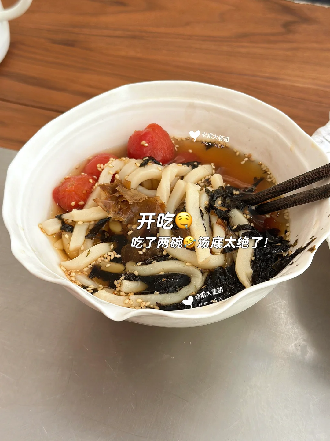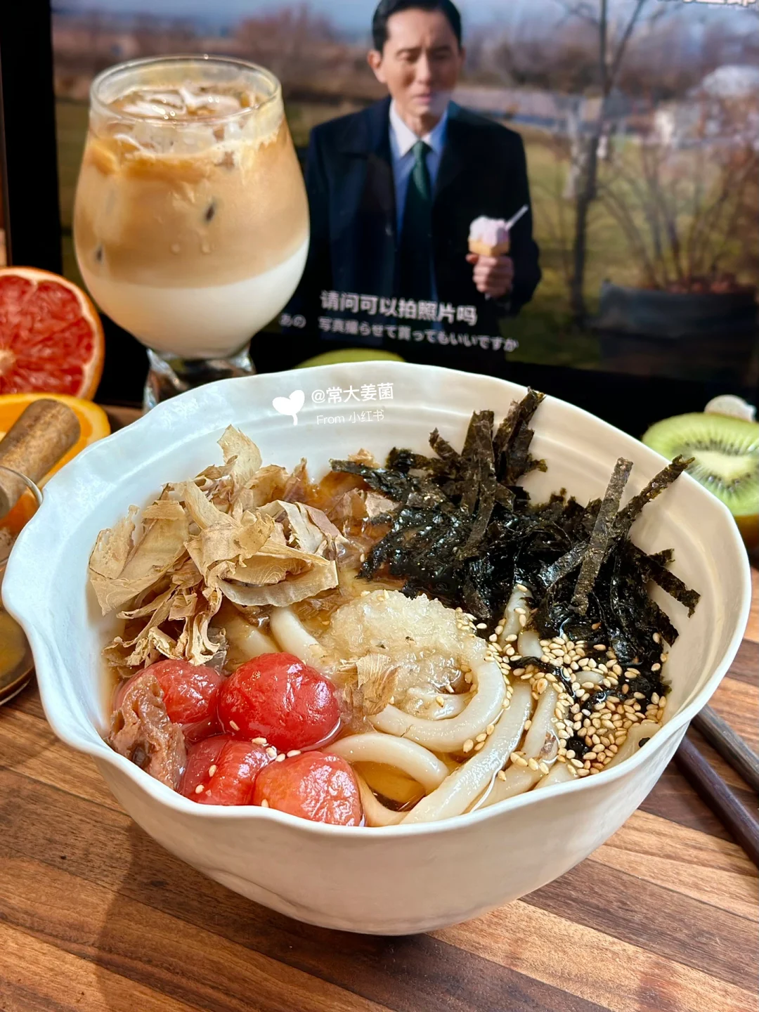 常规清汤版的梅渍番茄乌冬面,味道有点单一, 加了点木姜子油,我直接给它封Queen!! ⭐这道面乃一人食 之 高光食谱!