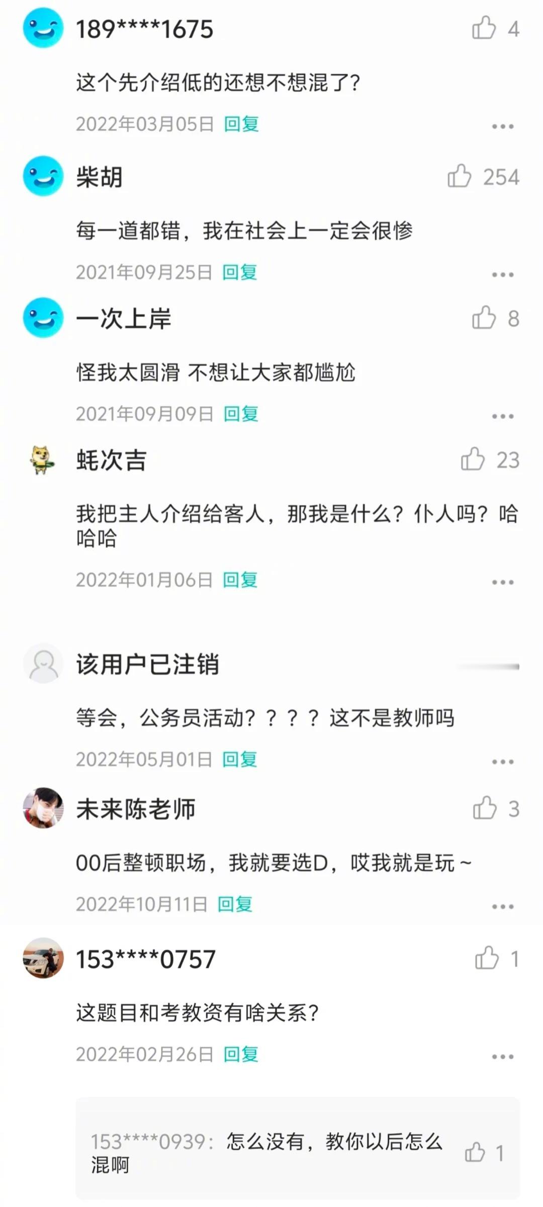 #教资题库评论区的逆天发言#在上学和上班中选择了在学校上班是我的错,救救孩子吧