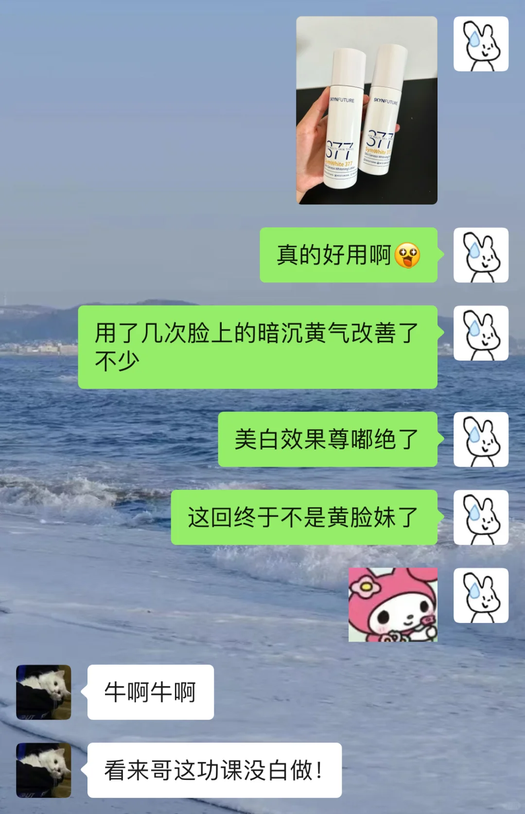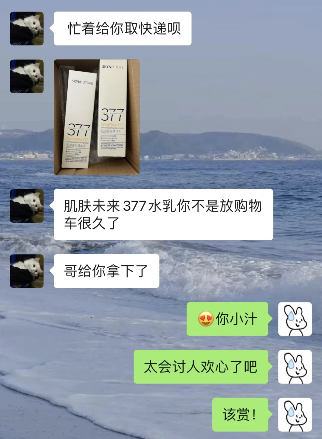 和怨种男朋友的对抗日常 在谈一场势均力敌的恋爱真的很开心 男朋友不仅会接梗还特会来事 真的是模范男友了哈哈 最近熬夜加班皮肤状态一点都不好暗沉还蜡黄 加购了很久的肌肤未来377水乳 本想等着大促再买呢 没想到男朋友竟偷偷给我拿下了嘻嘻 用了段时间肤感尊嘟超级棒 特别好吸收 皮肤都白嫩细腻了不少 不愧是我的本命美白水乳 真的敲爱