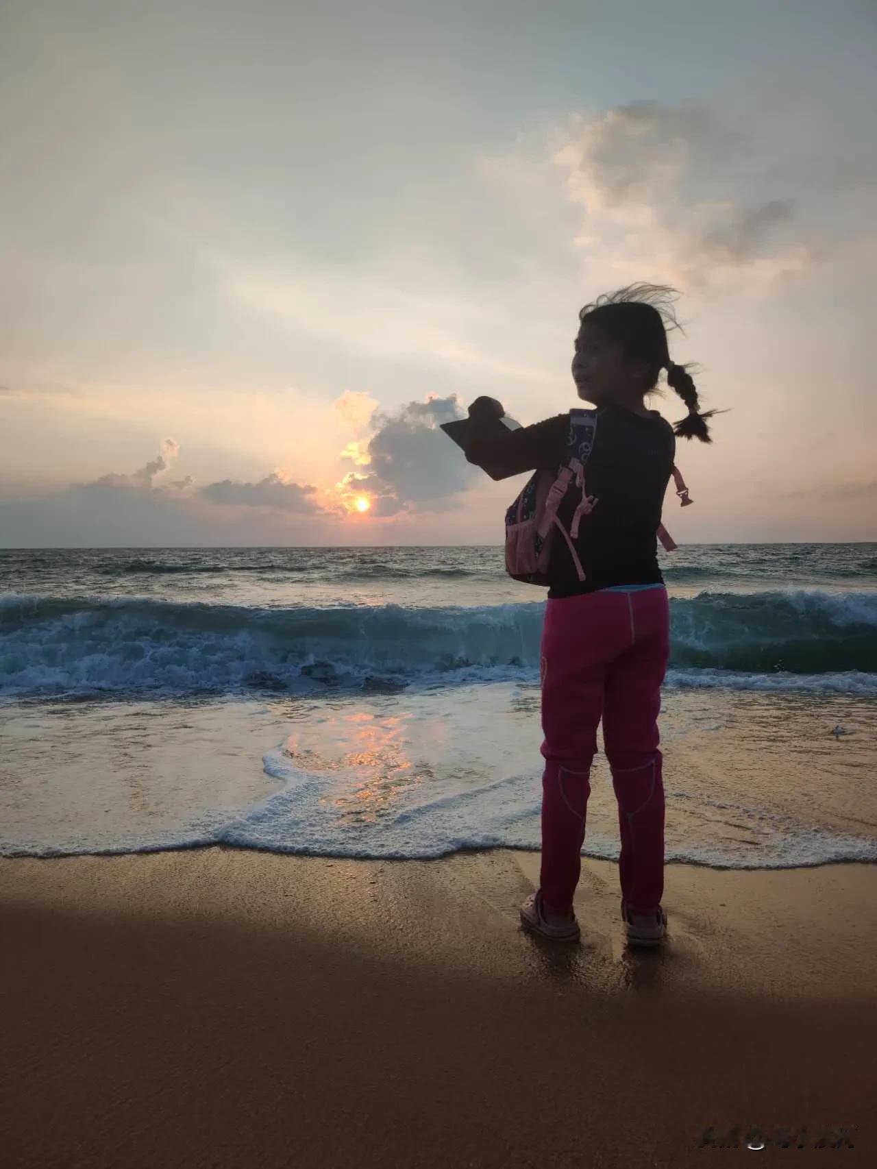 #分享一张你的日出照片#这是小俩兄妹半夜四点钟起床赶着来汕尾红树湾迎来日出的照片