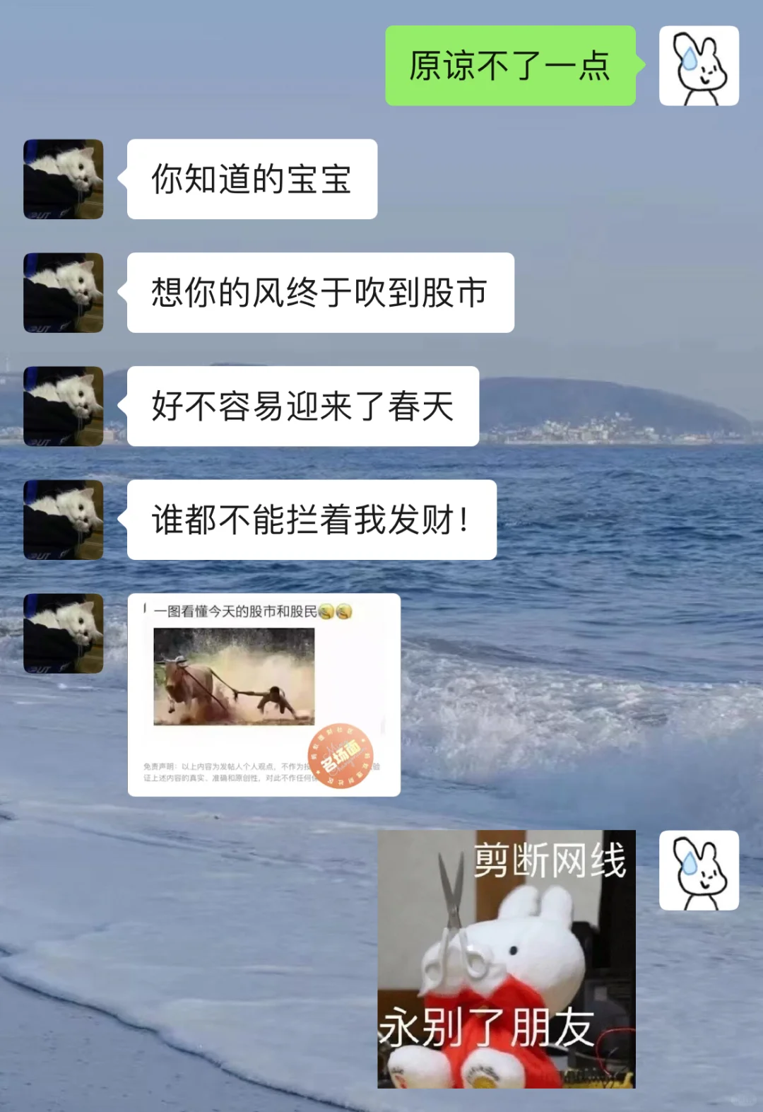 谁懂啊 真的要被他气死了 天天盯着他的股 好像真的能挣好多一样 国庆的行程也不安排了!!这回绝对不能轻易的就这么放过他!!! 他是不是天天在被窝里就忙着背蚂蚁理财社区的梗了!