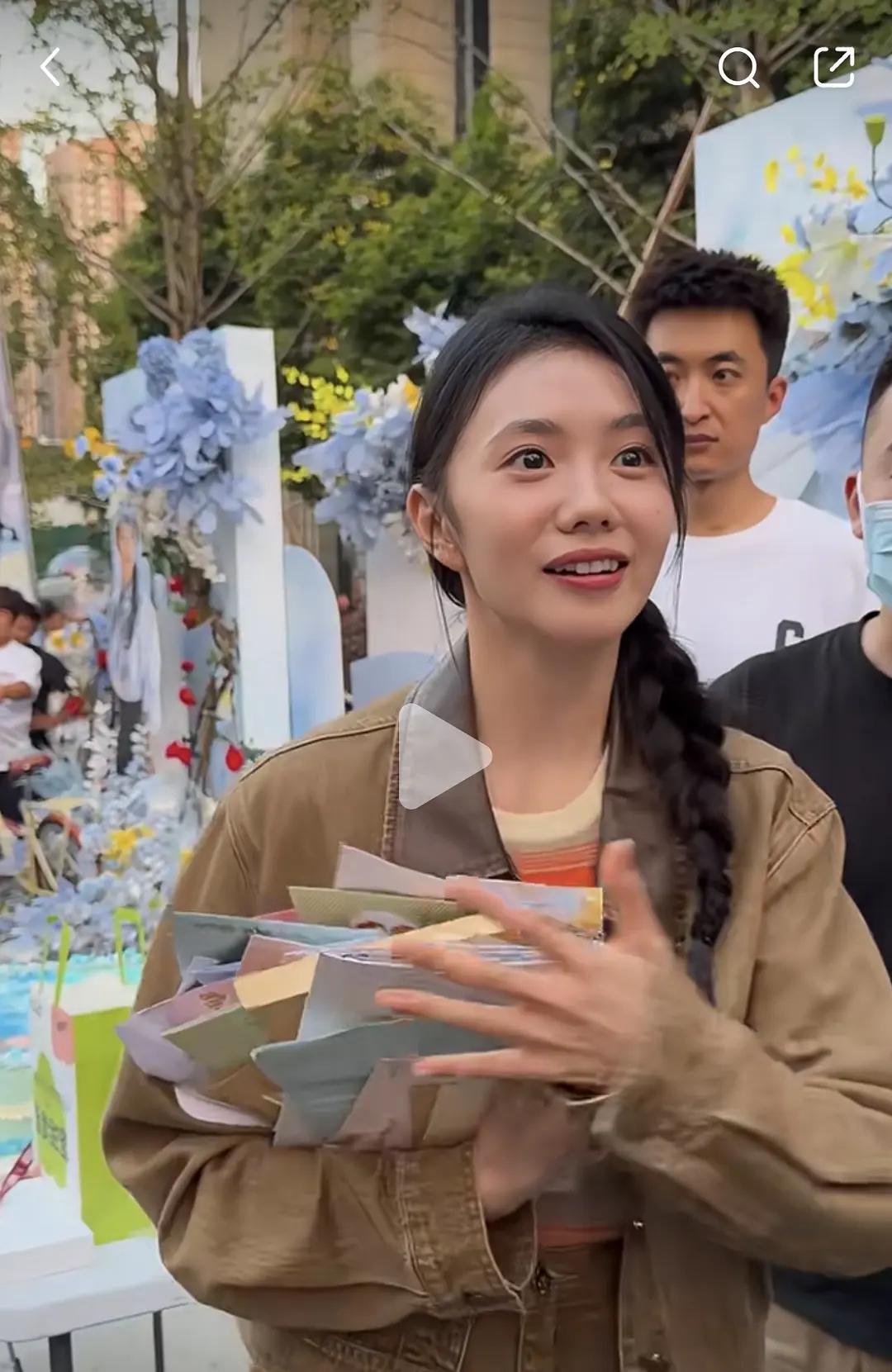 张天爱跟素人合影,胯真的好宽,大宅院似的