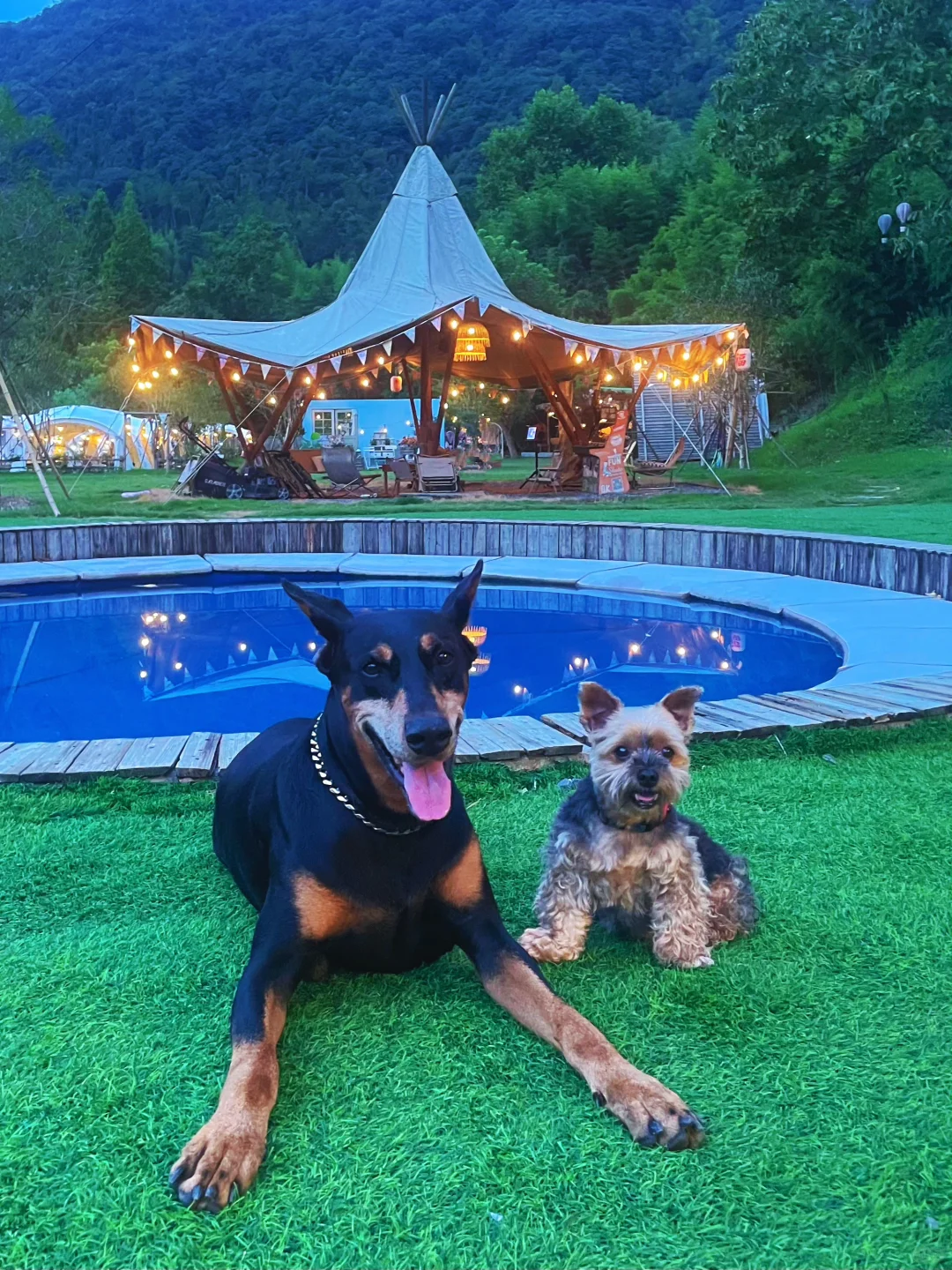 带着小狗去旅行 带着宠物去户外 这里可以带狗玩 一起去露营 带着小狗去踏青 带着宠物去玩耍 狗狗 美系杜宾 宠物