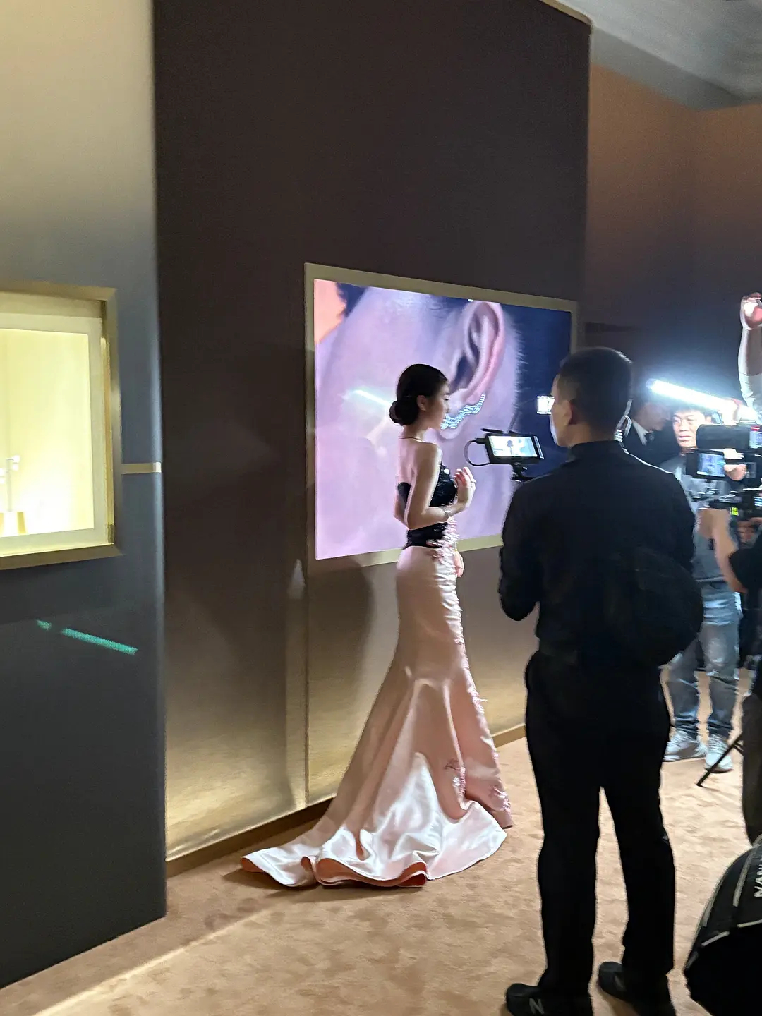 张天爱跟素人合影,胯真的好宽,大宅院似的