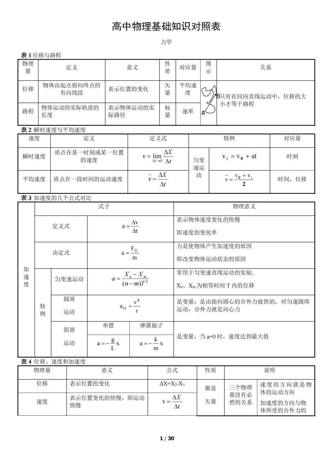 高中物理|公式对照表背起来