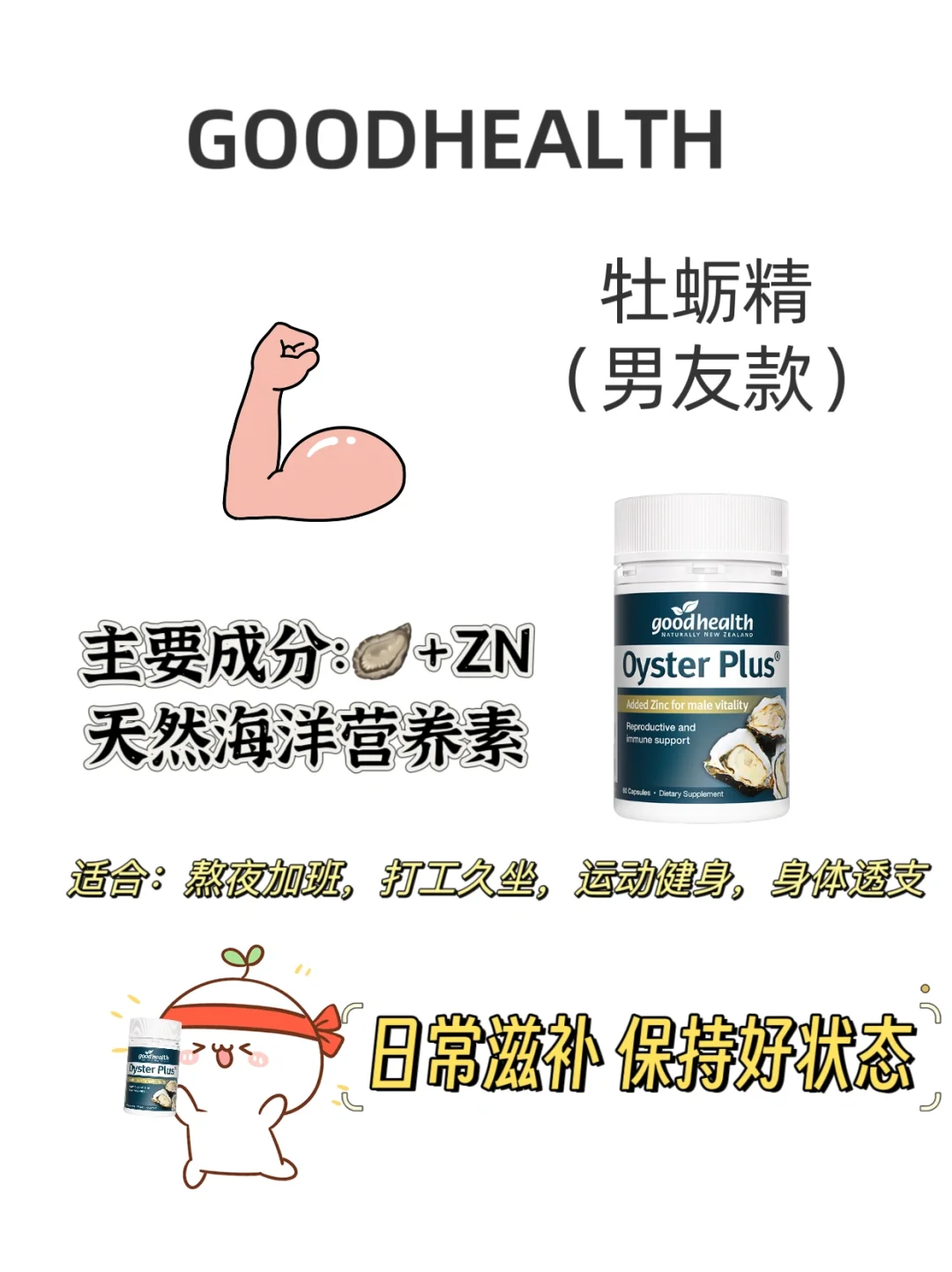 这款应该goodhealth家的招牌的男士产品,很多刚开始接触保养的男生都会选择这款,主要成分是牡蛎粉+锌,高纯度牡蛎肉粉性价比高,GMP认证安全品质把控好 ,牡蛎类目的天花板哦!