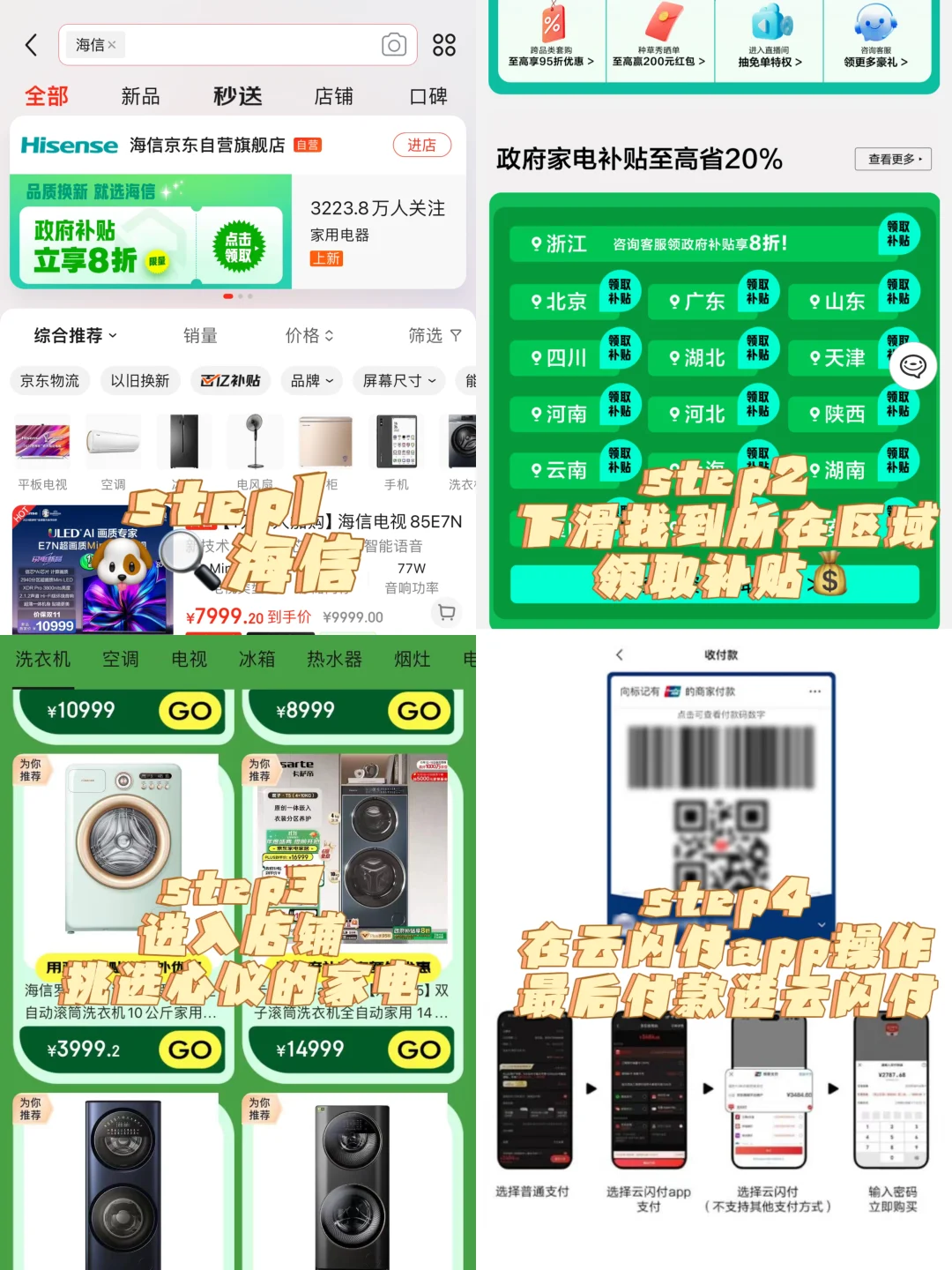 4、进京东海信京东自营旗舰店,找到想要的家电,直接调整到云闪付付款,就能看到满减