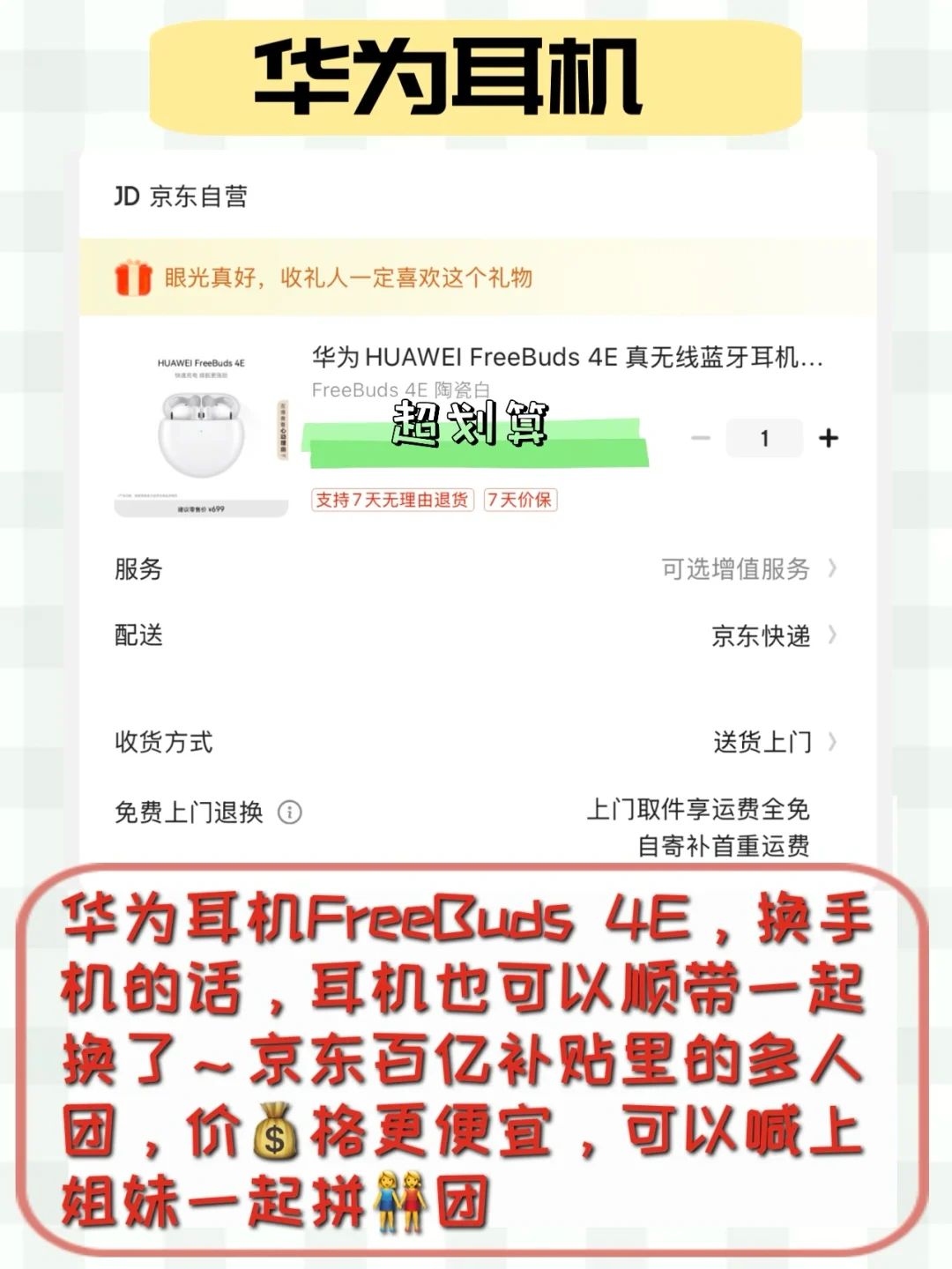 🌈华为耳机FreeBuds 4E,换手机的话,耳机也可以顺带一起换了~京东百亿补贴里的多人团,价💰格更便宜,可以喊上姐妹一起拼👭团