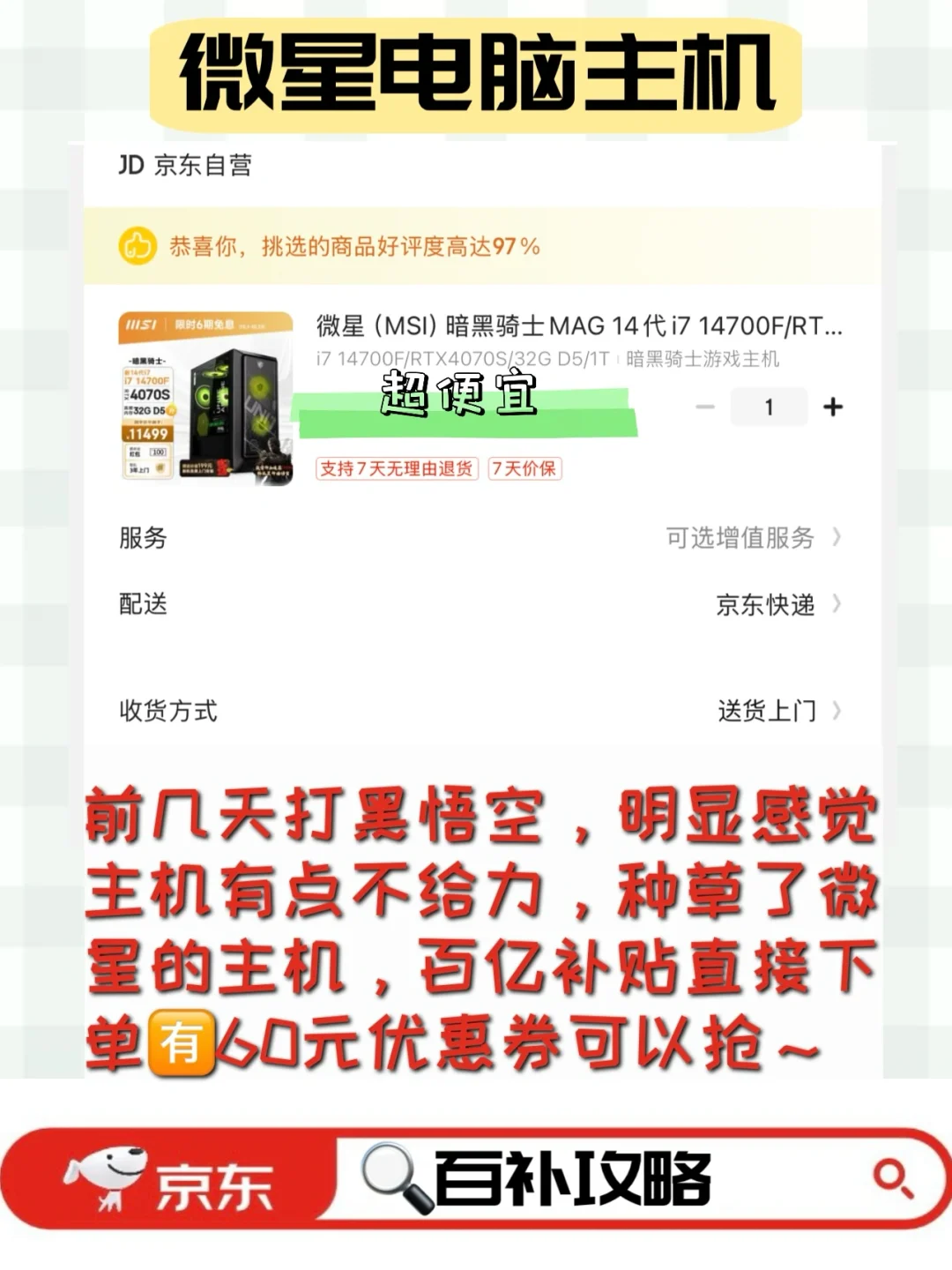 🌈微星电脑主机,前几天打黑悟空,明显感觉主机有点不给力,种草了微星的主机,百亿补贴直接下单🈶60元优惠券可以抢~