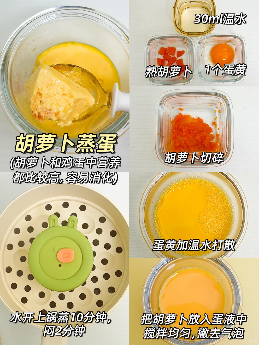 🔸胡萝卜蒸蛋(容易消化,富含维A)